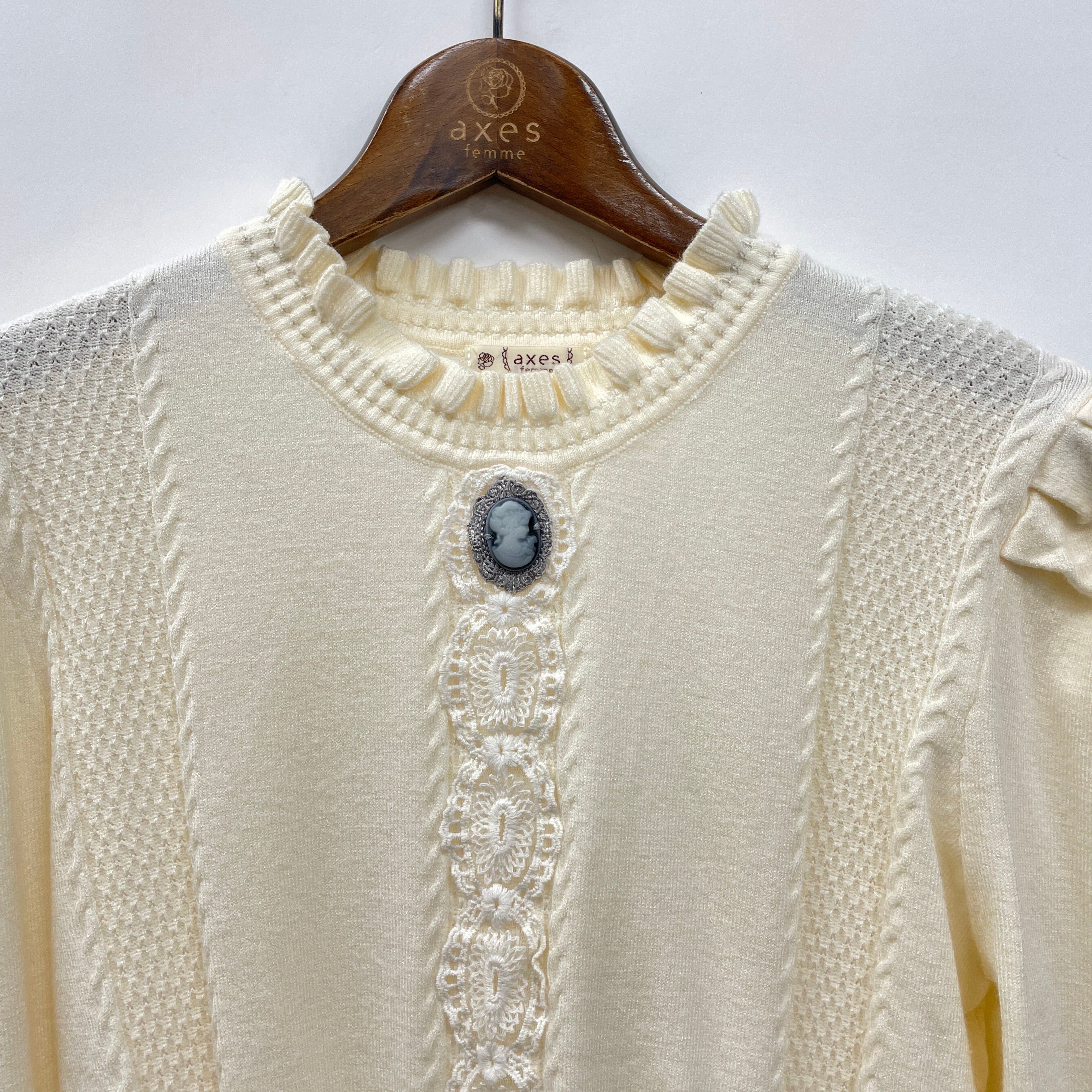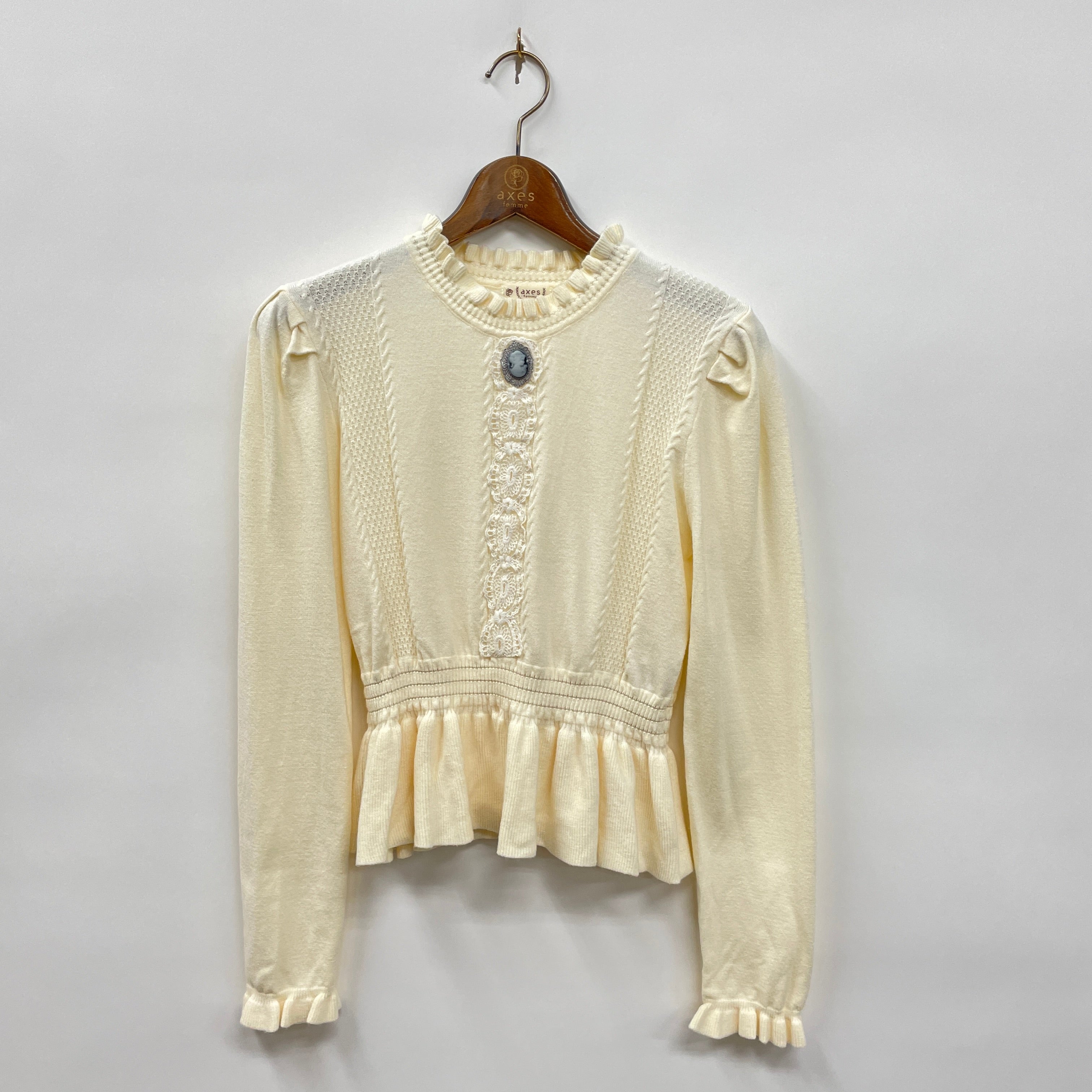 カメオ付ペプラムニット