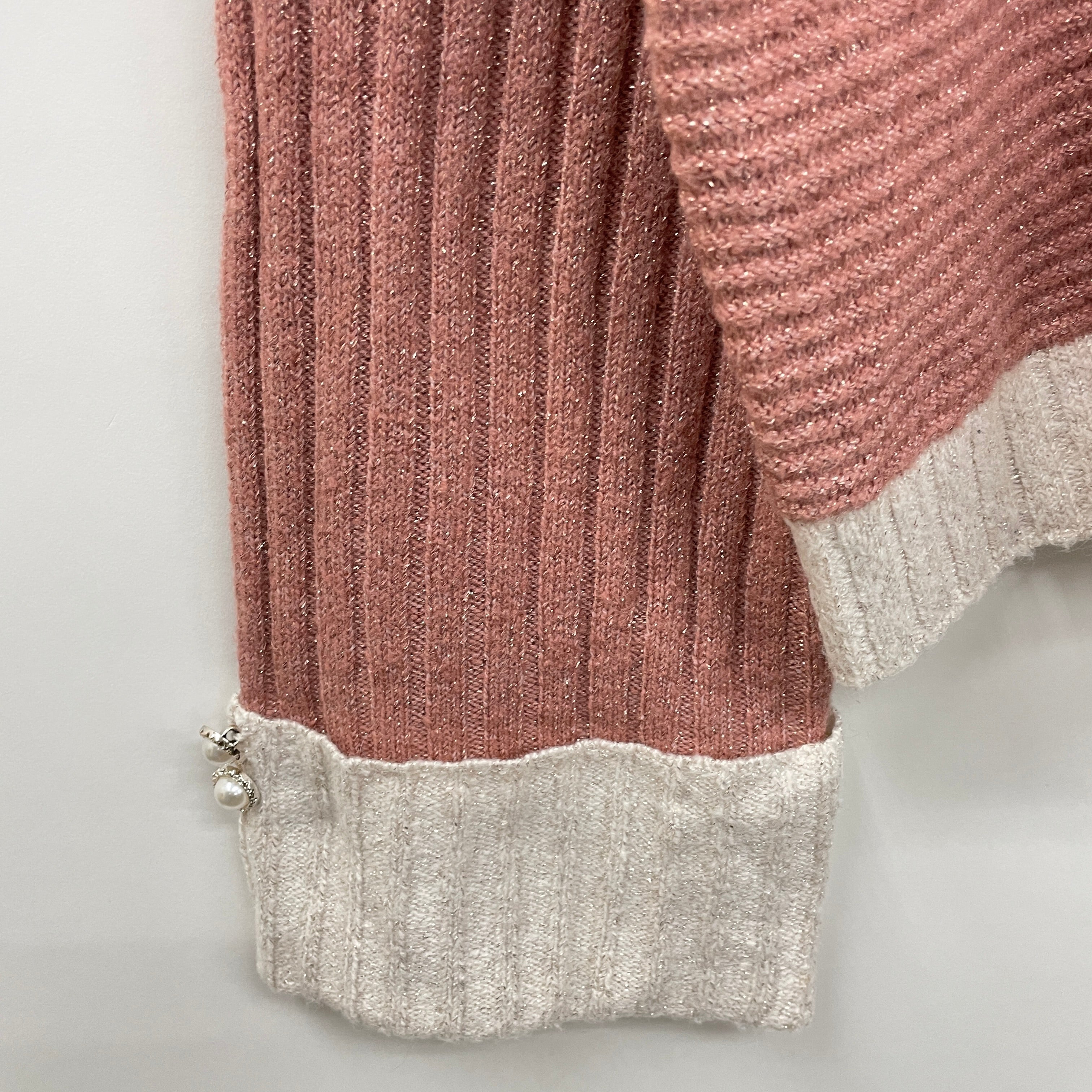 キラキラと華やかに光るラメ糸を編み込んだニットプルオーバーです。