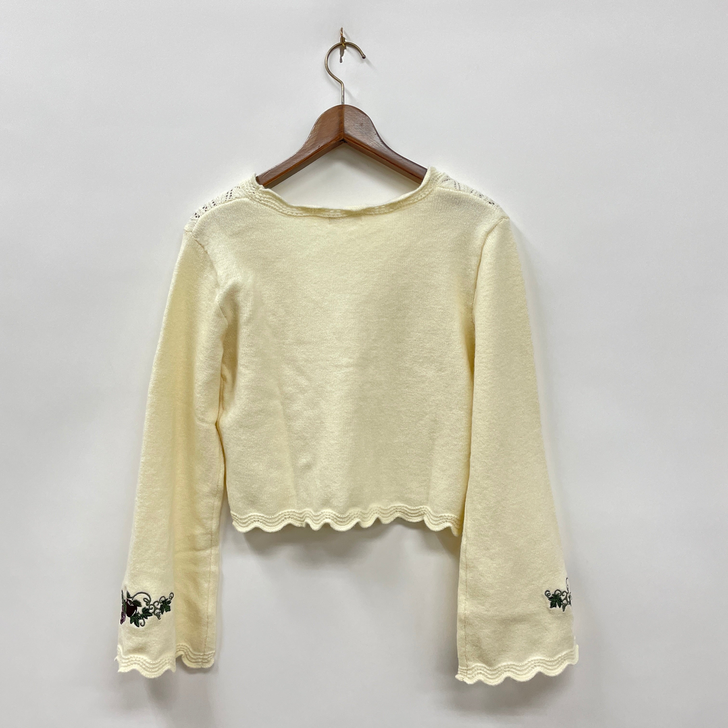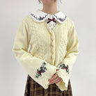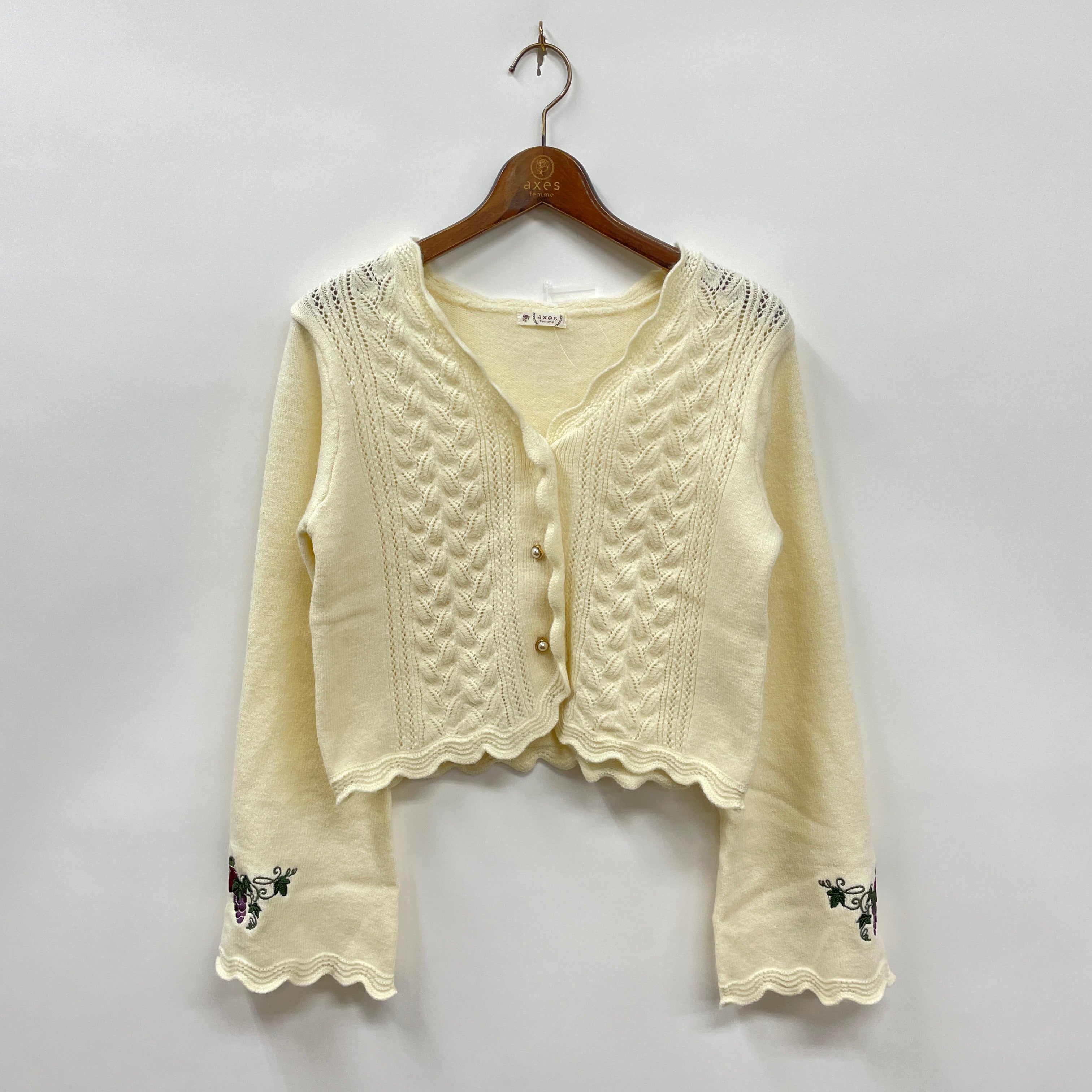両袖にりんごとぶどうの刺繍をあしらったカーディガンです。