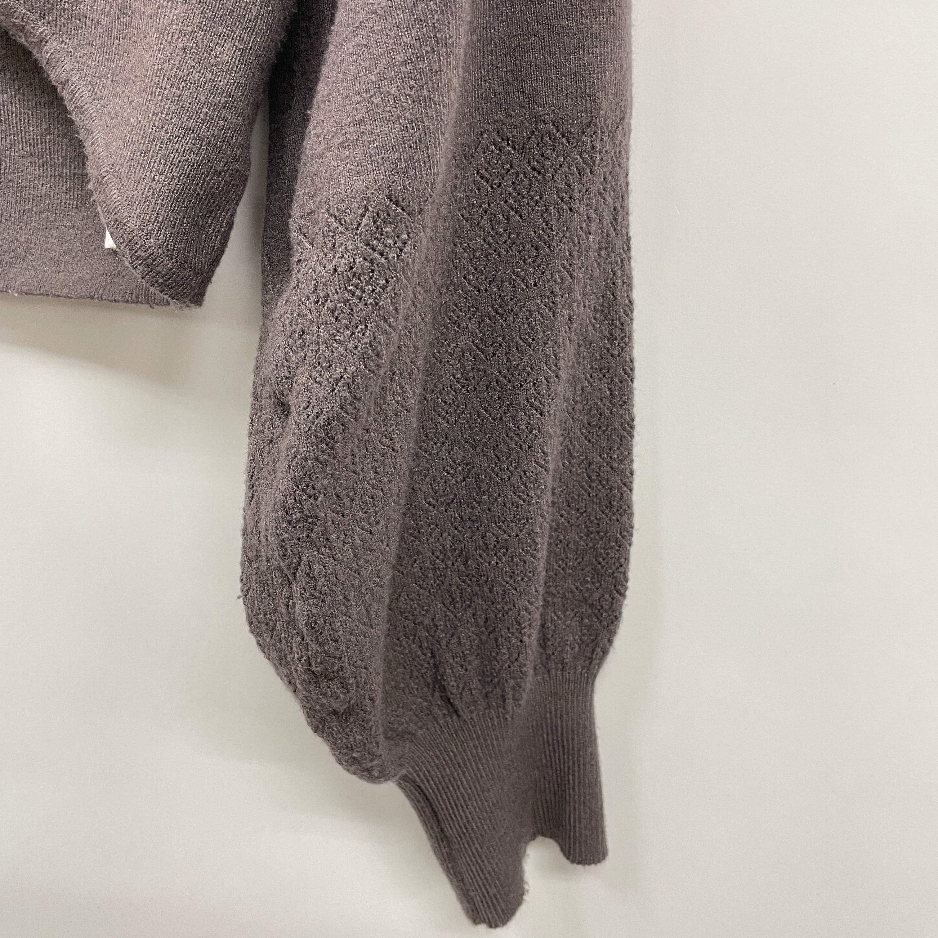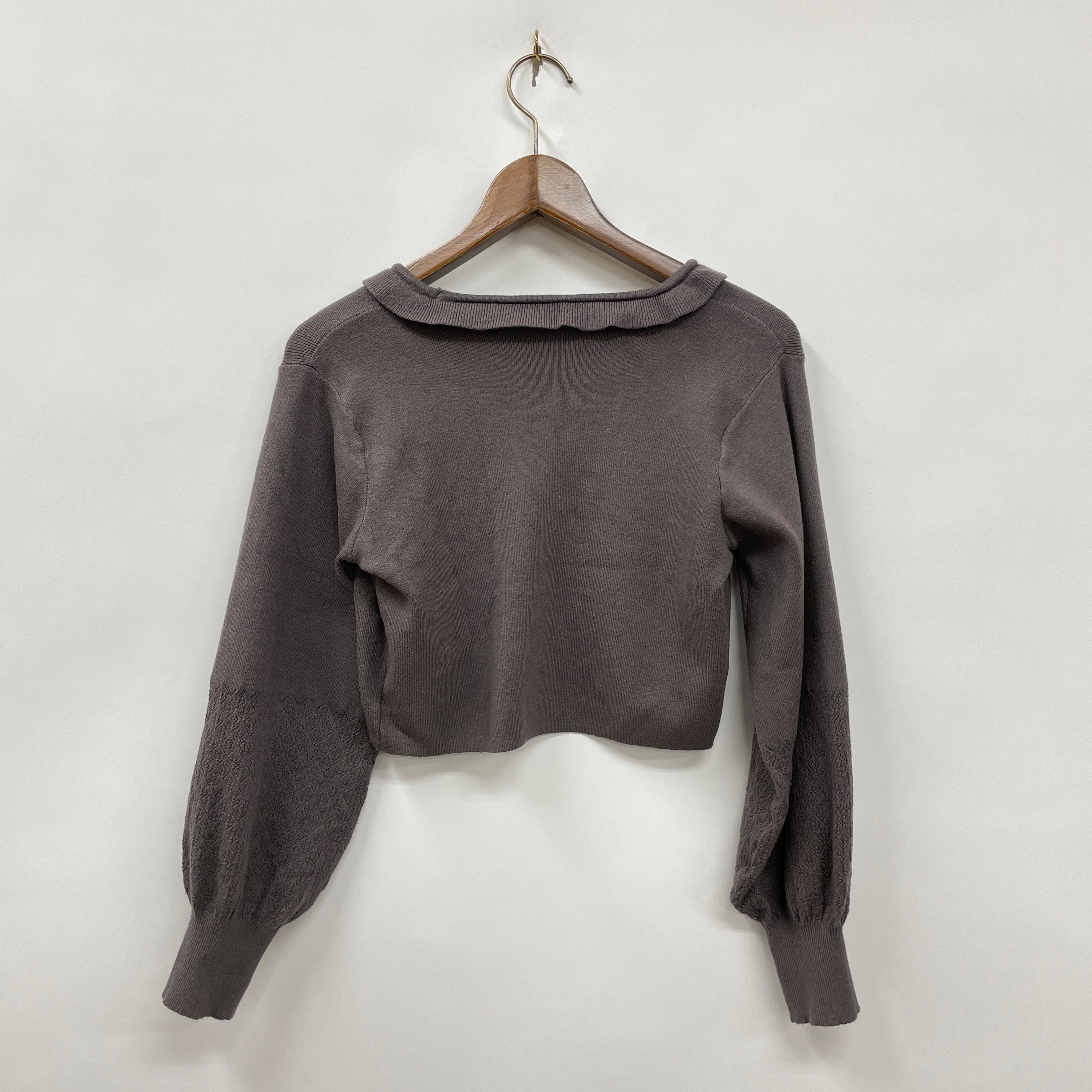 袖にあしらわれた編み柄やパールがフェミニンな印象で、シンプルなショート丈のシルエットなので、クラシカルなテイストで合わせやすいアイテムです。