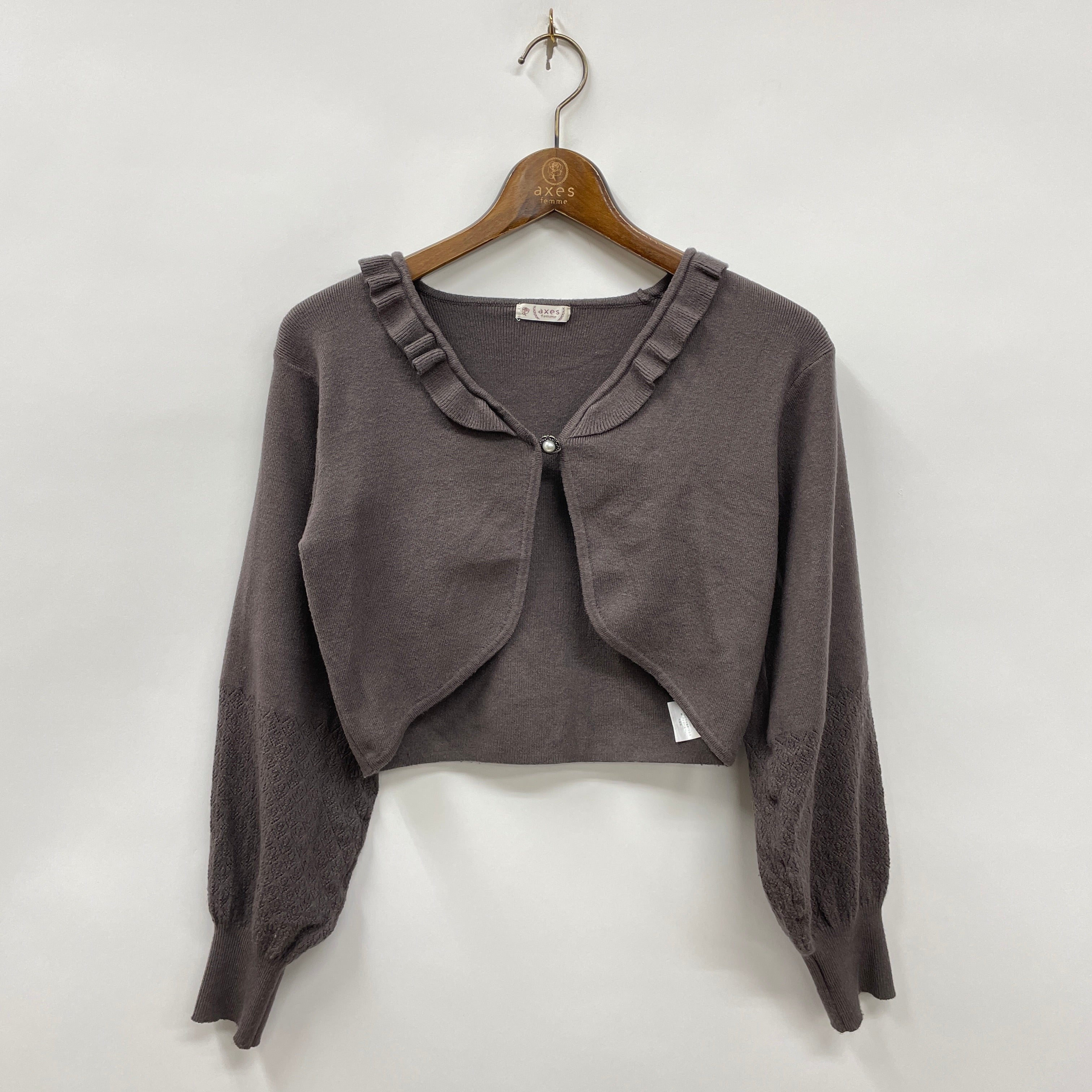 首元のフリルデザインがポイントの、ショート丈のニットボレロです。
