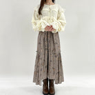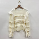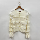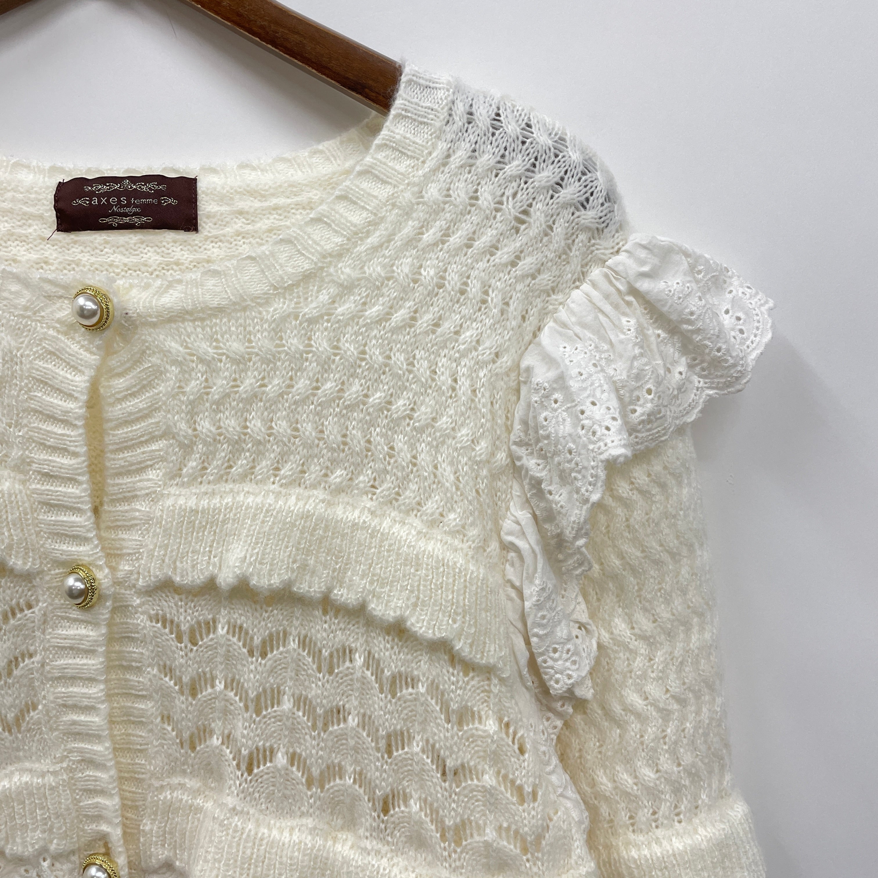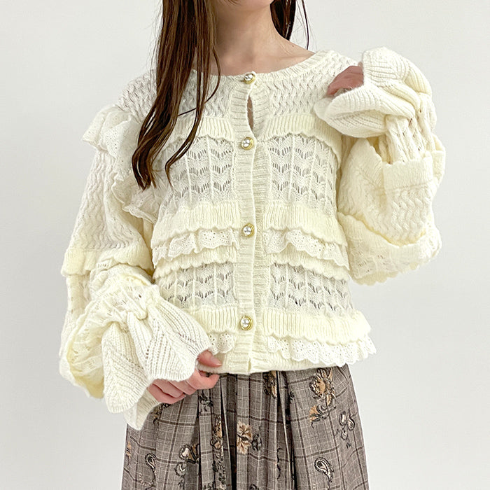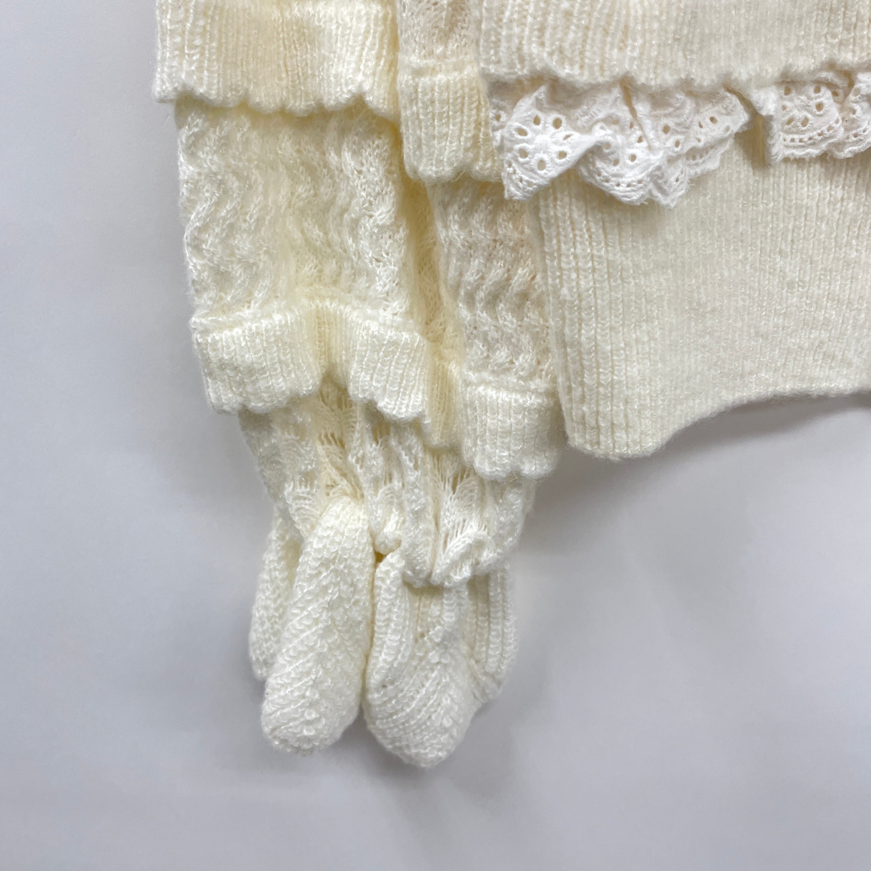 コットンレースとフリルを重ねた、エレガントなデザインのカーディガンです。