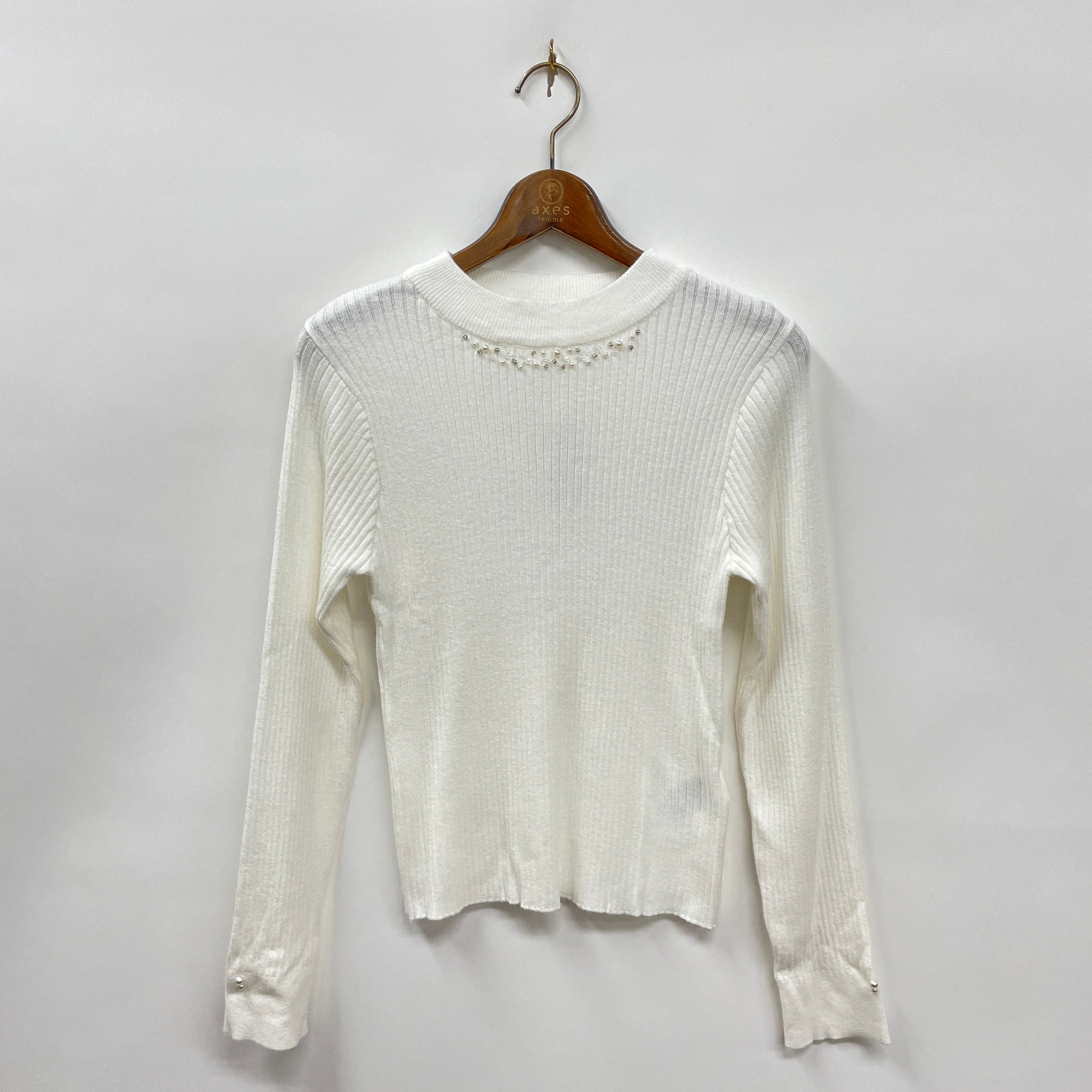 袖口にもパールをさりげなくあしらい、大人っぽく仕上げたアイテムです。