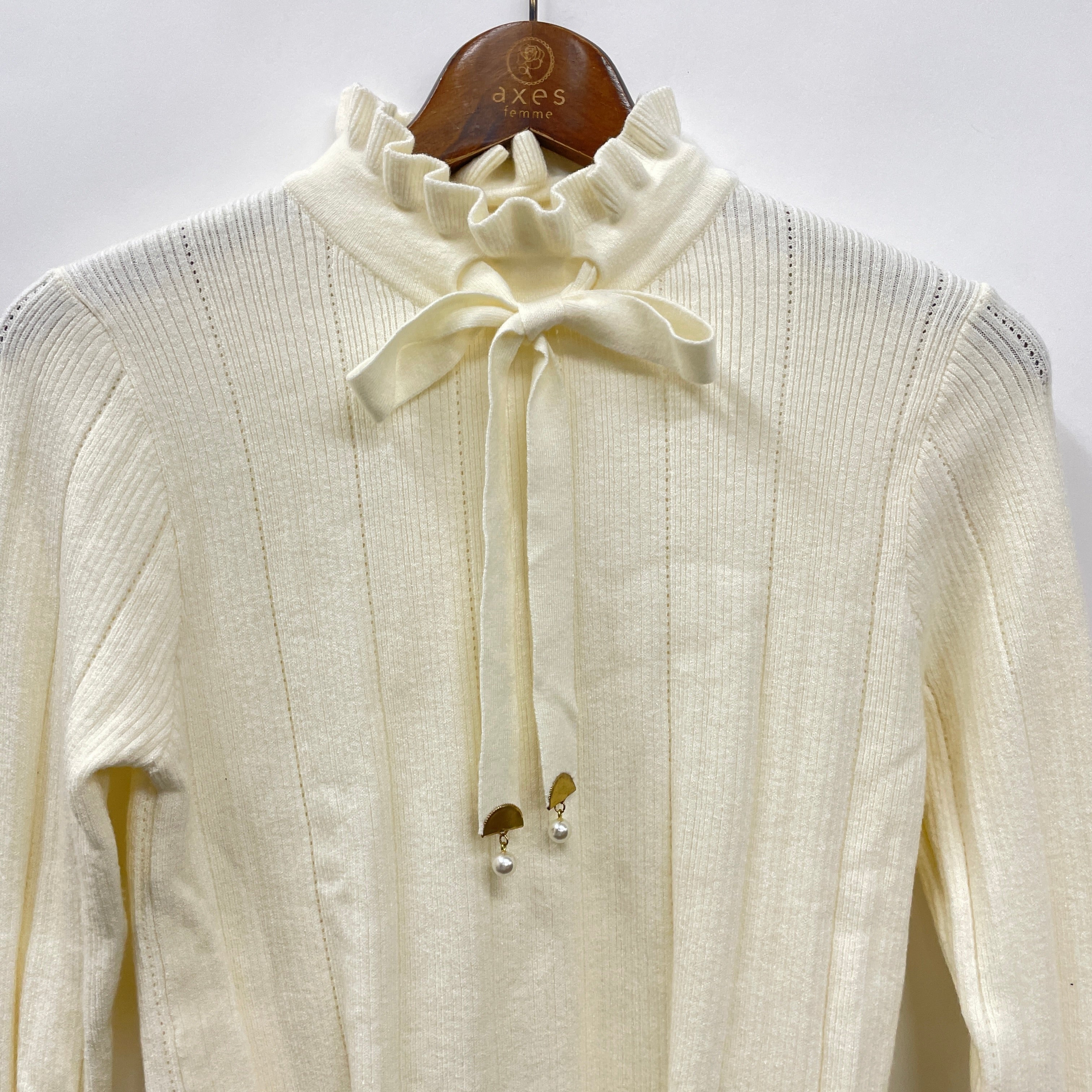 リボンも身頃と同じニット素材で甘過ぎないデザインに。