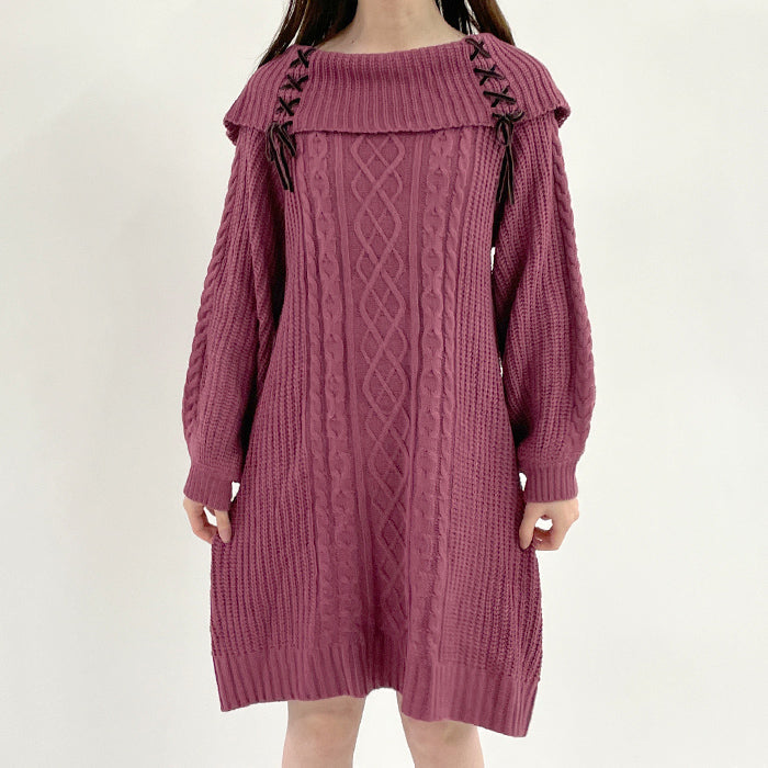 毎年大人気のWレースアップがフェミニンな印象のオフタートルデザインのニットチュニックです。