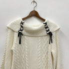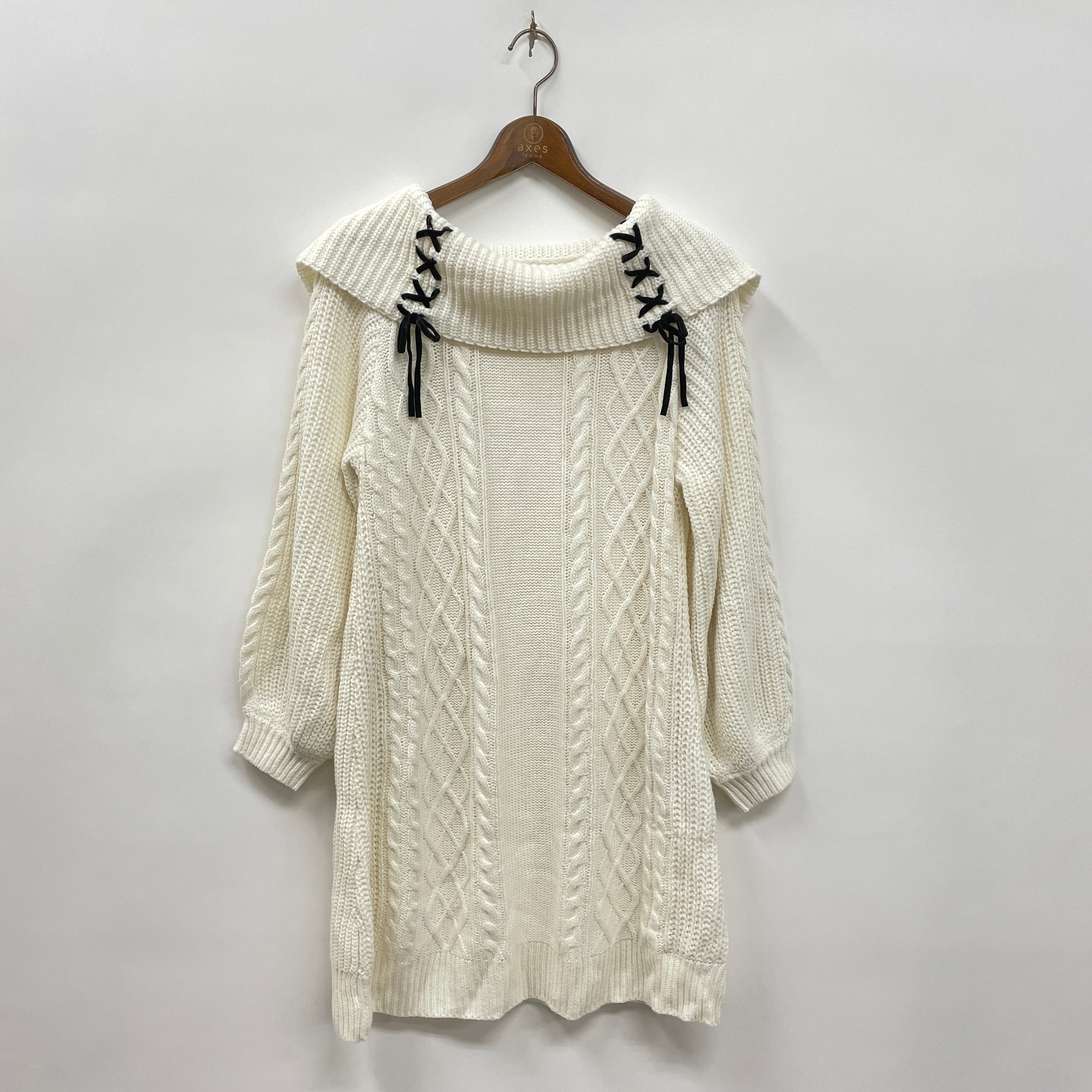 ベロアリボンのWレースアップがフェミニンな印象のオフタートルデザインのニットチュニックです。