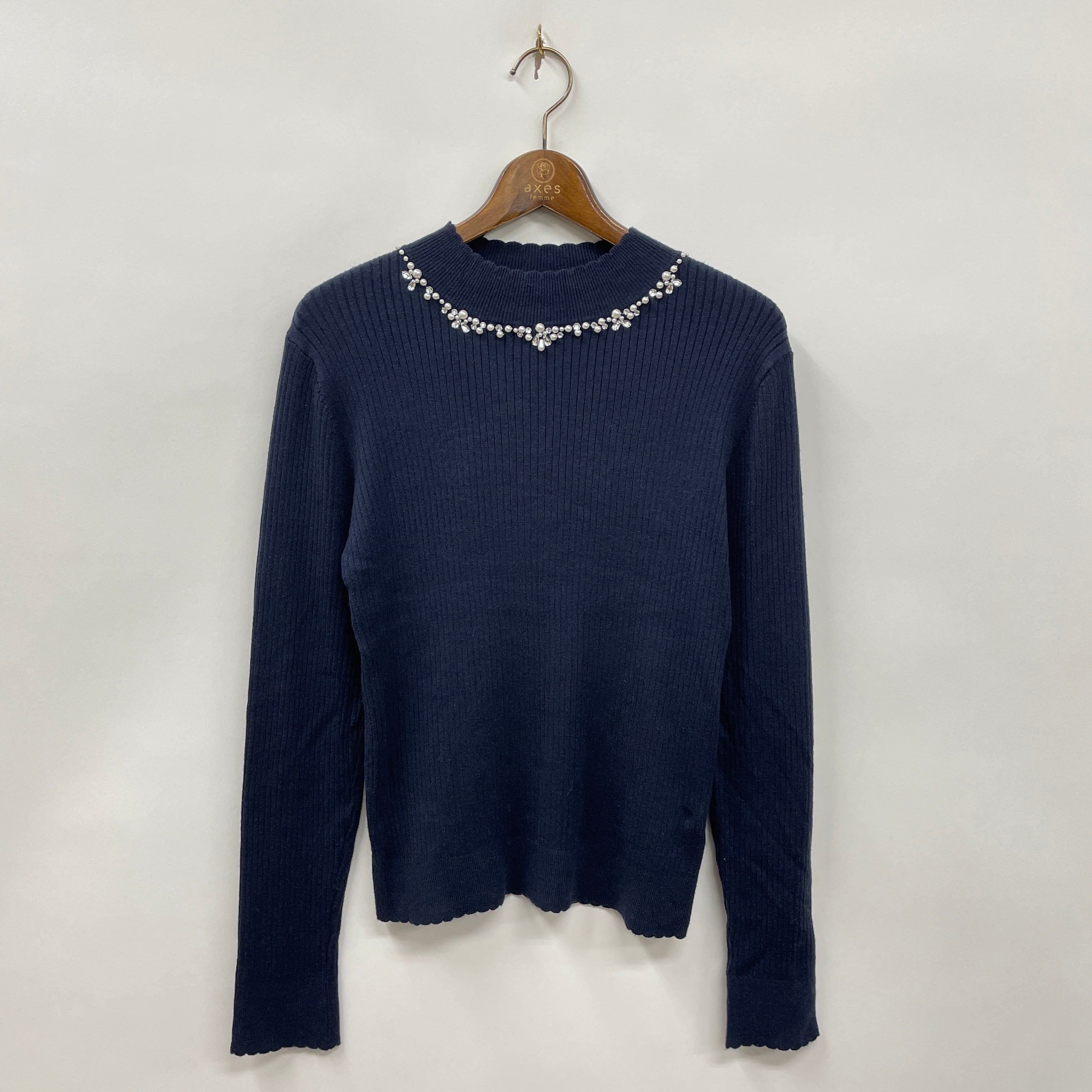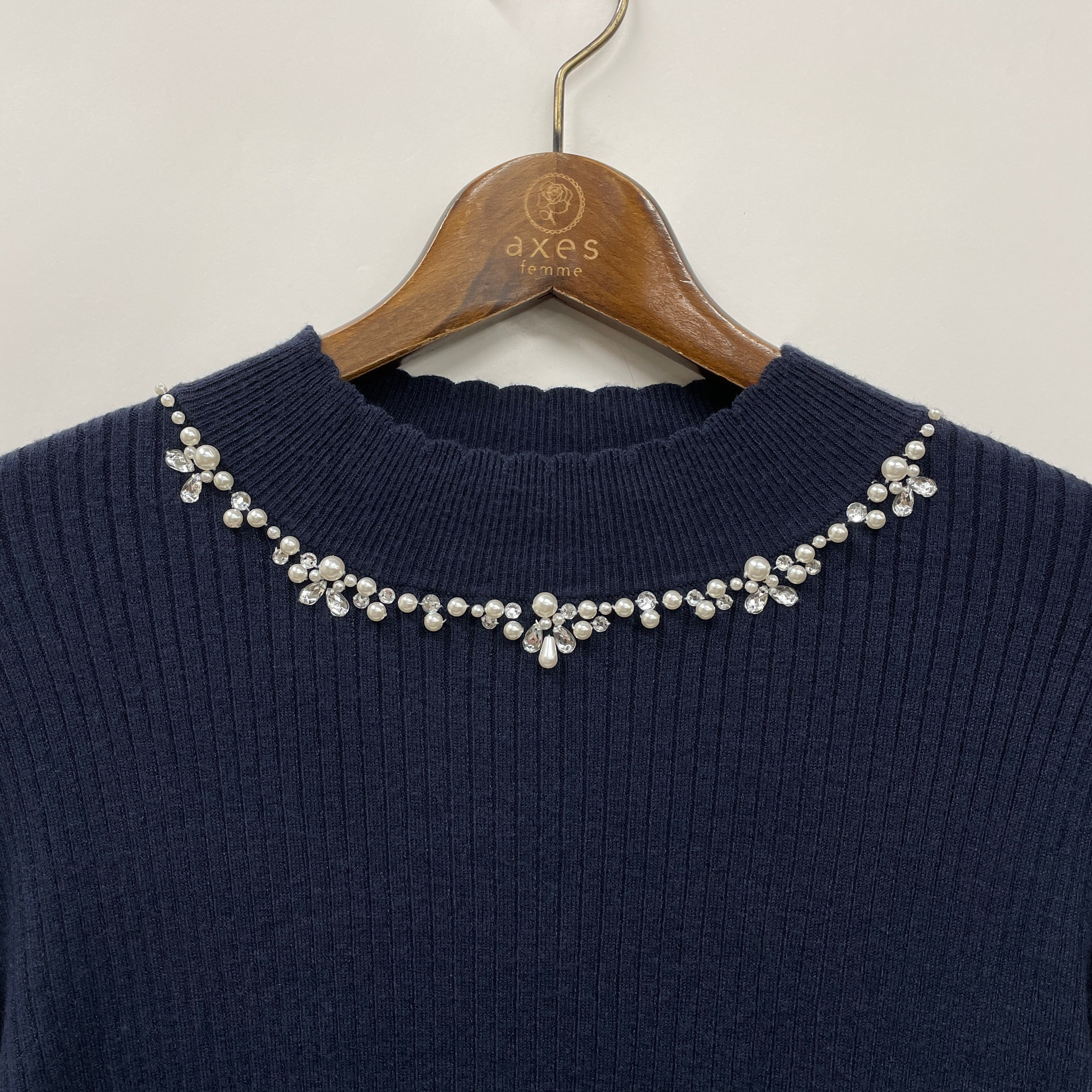 首まわりを華やかに彩るパールビジューがポイントのニットPOです。