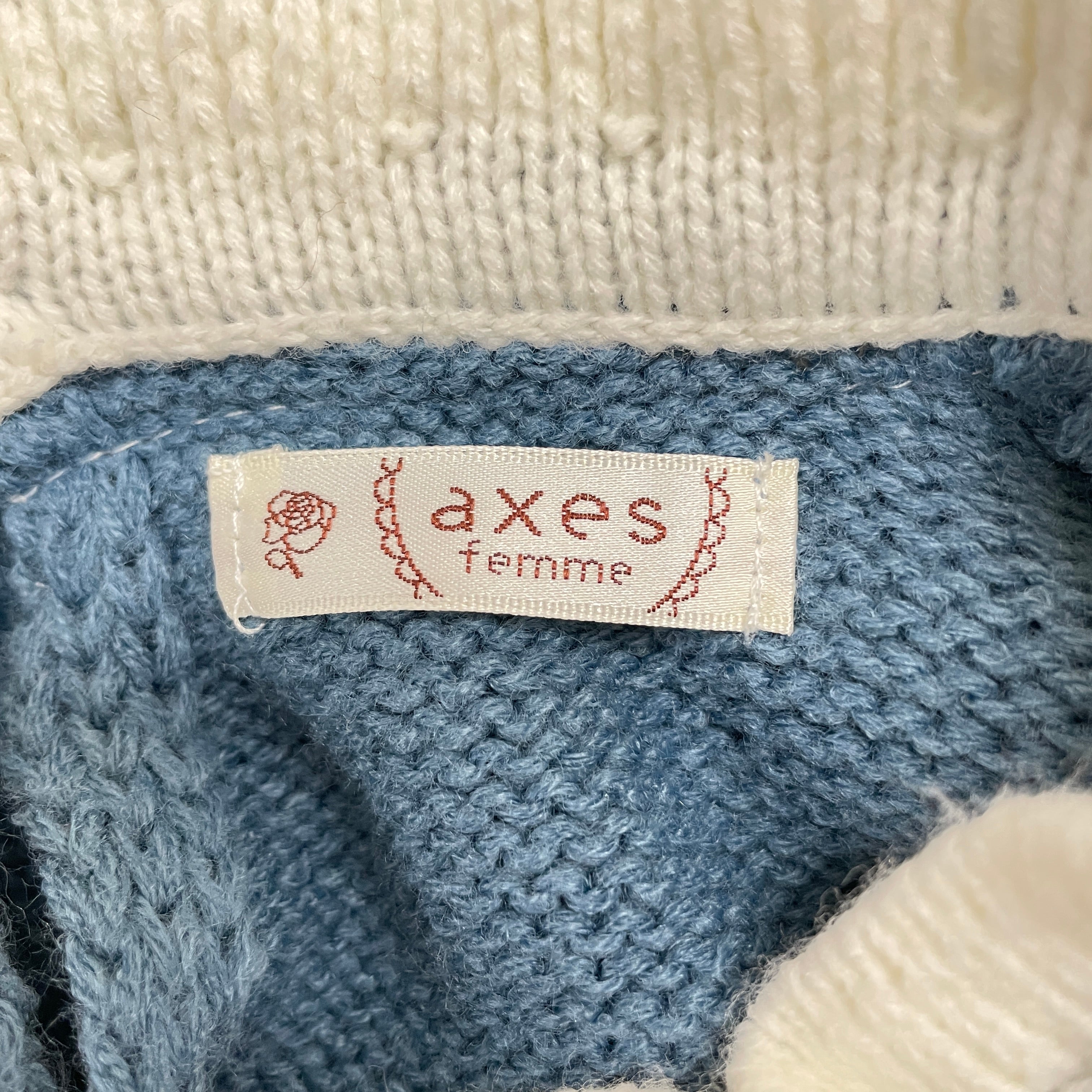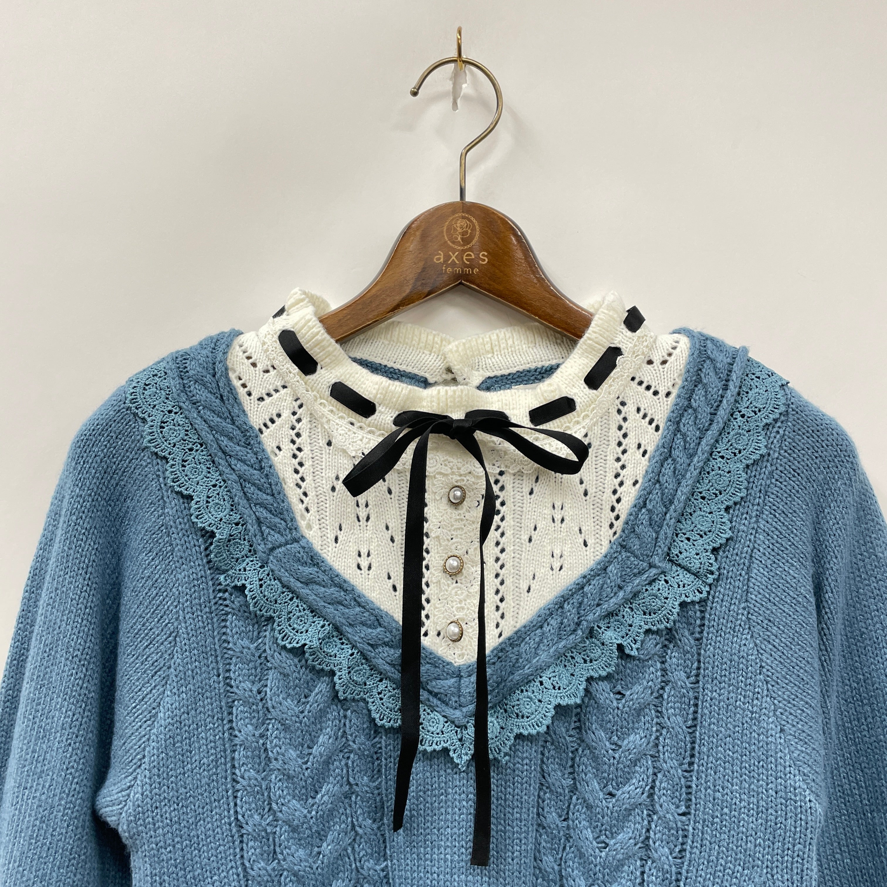 配色のリボンとブロッキングデザインがポイントのニットワンピースです。
