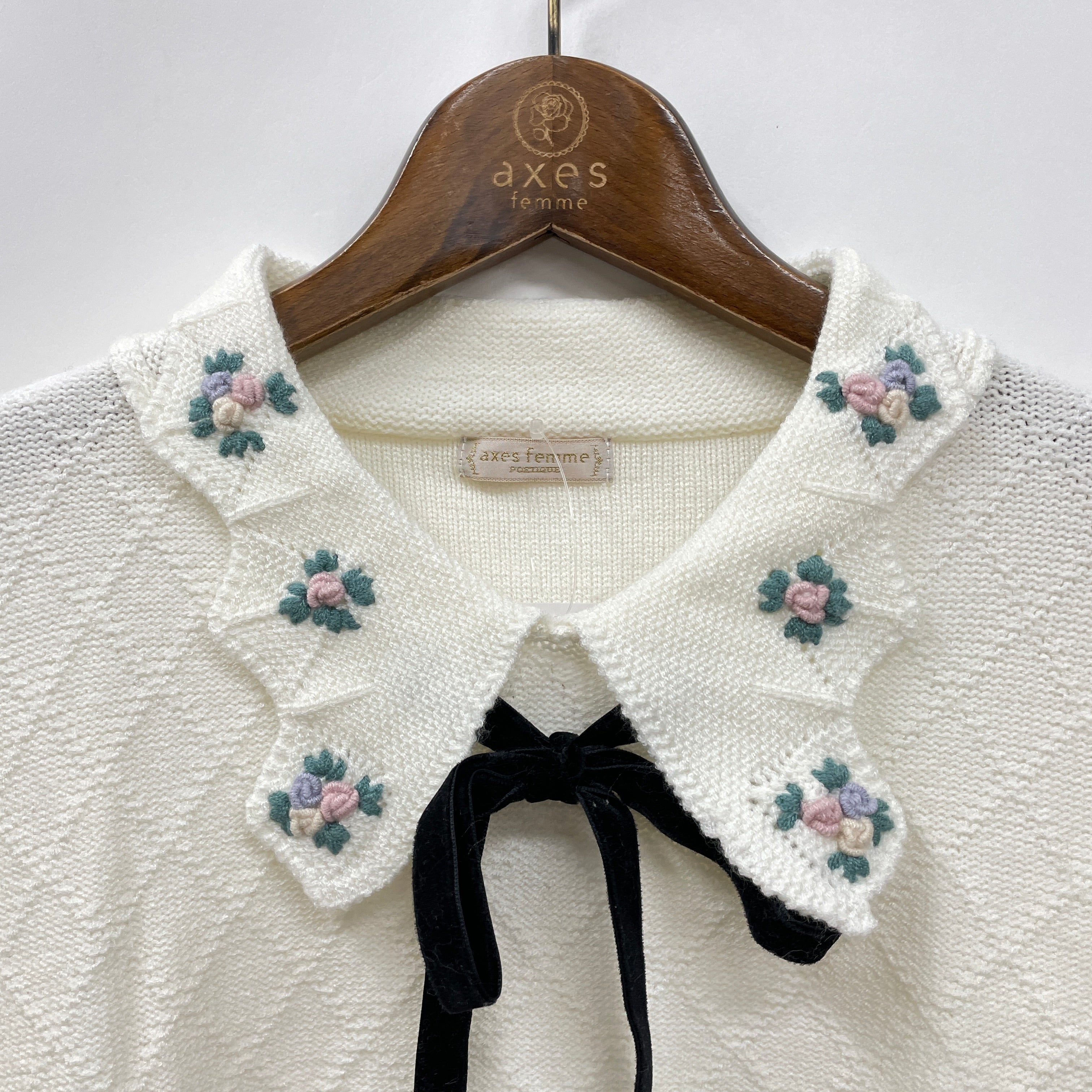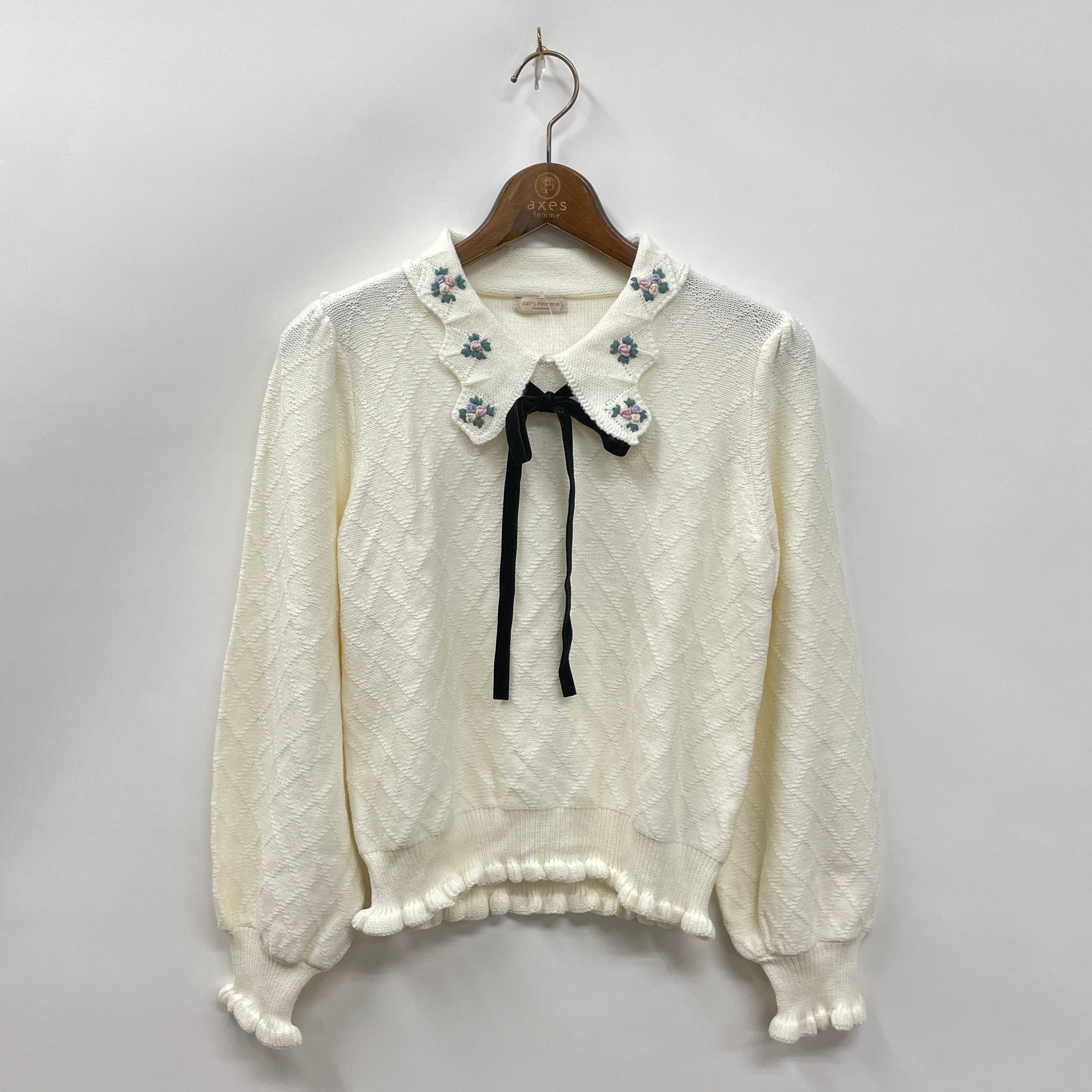 フラワー刺繍襟ニットPO