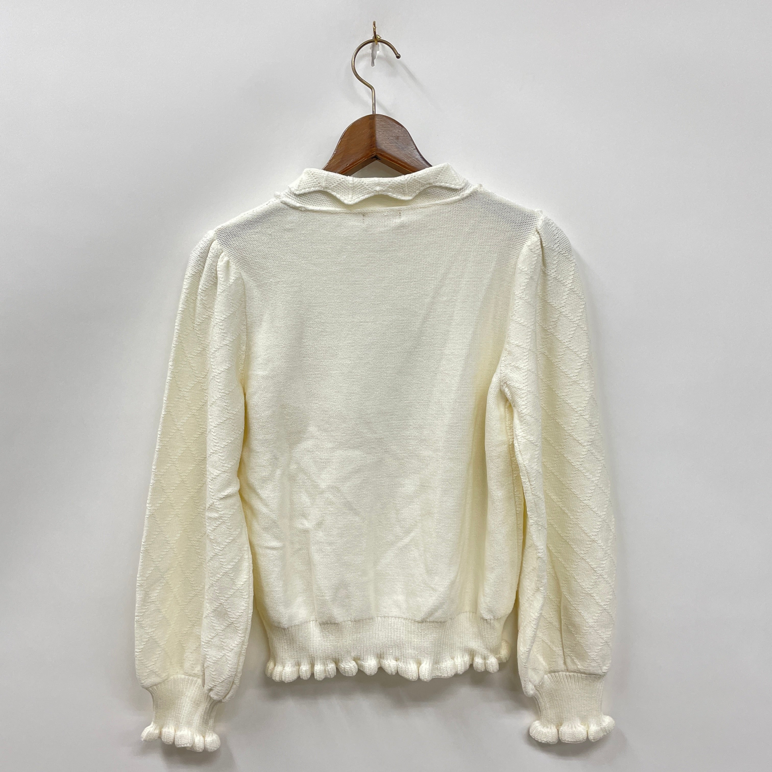 冬のガーリーコーデにおすすめの襟付きのニットプルオーバーです。