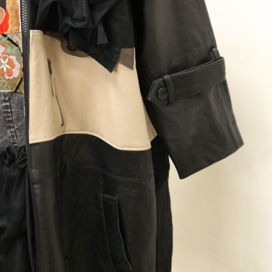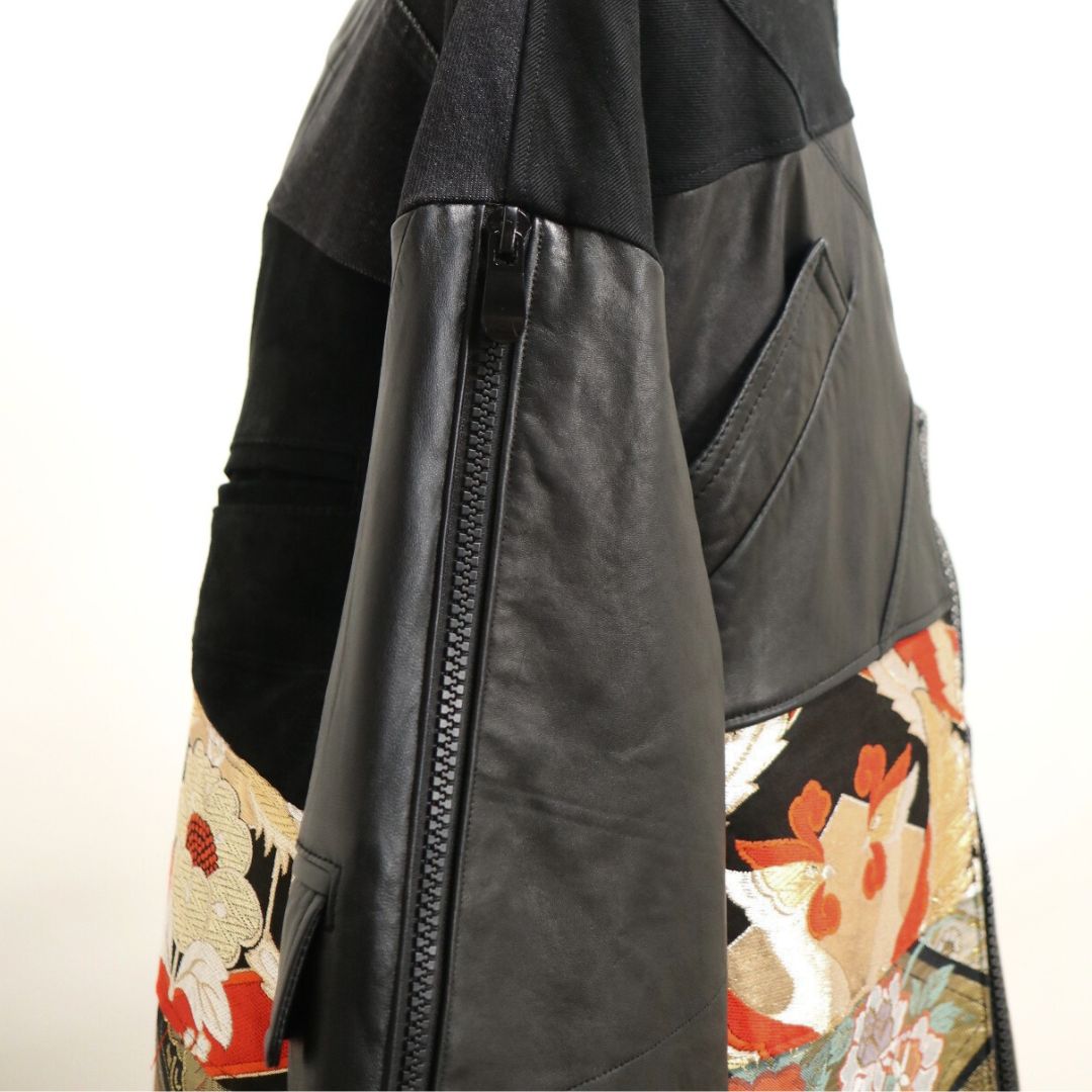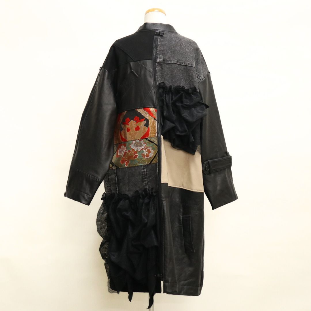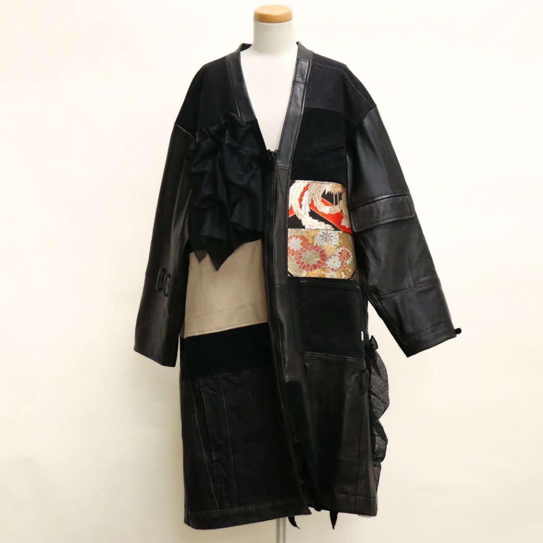 再構築obi Leather denim coat