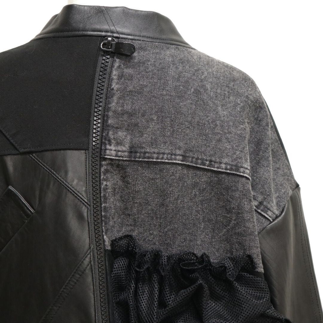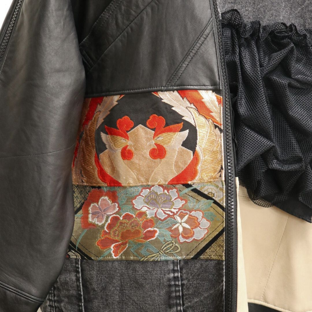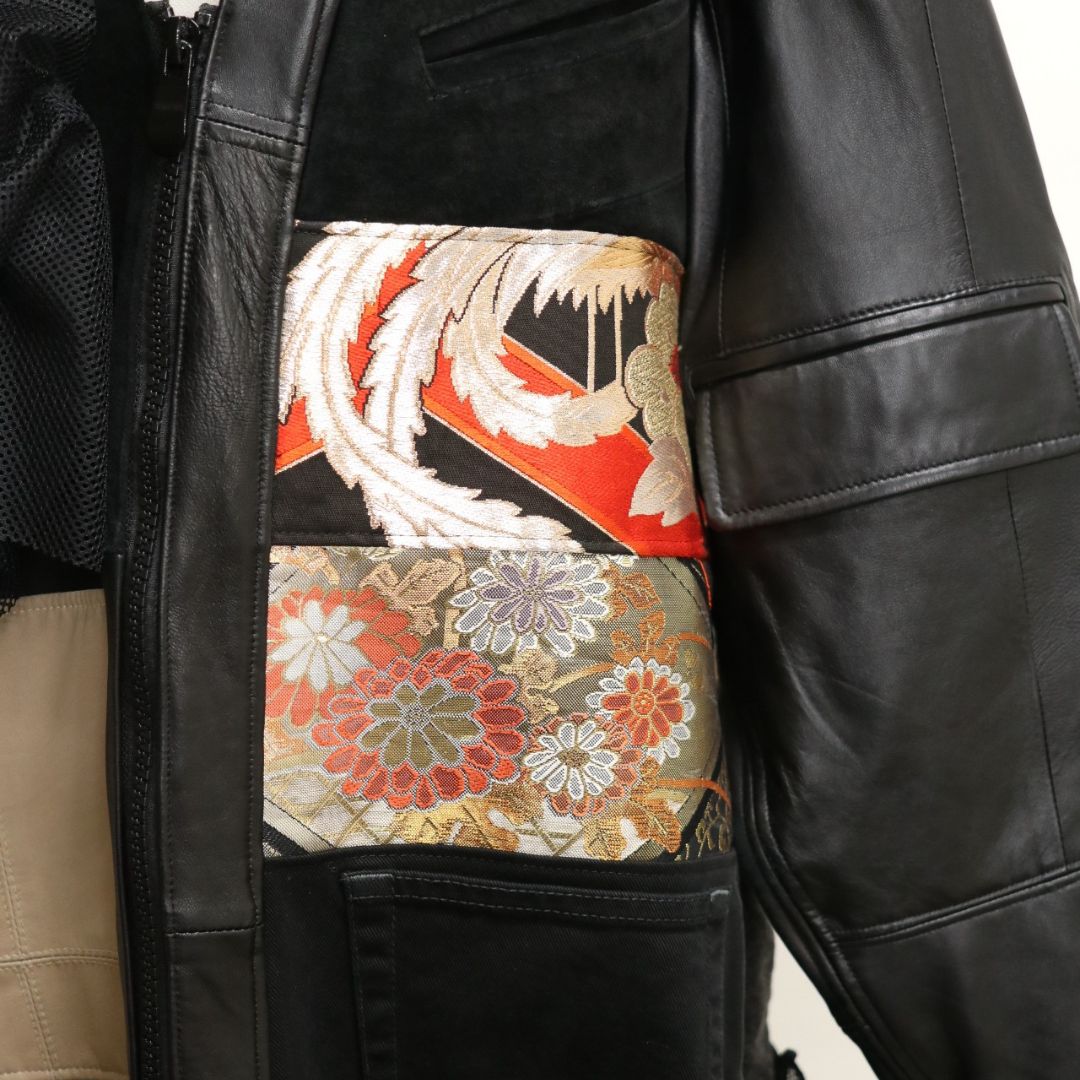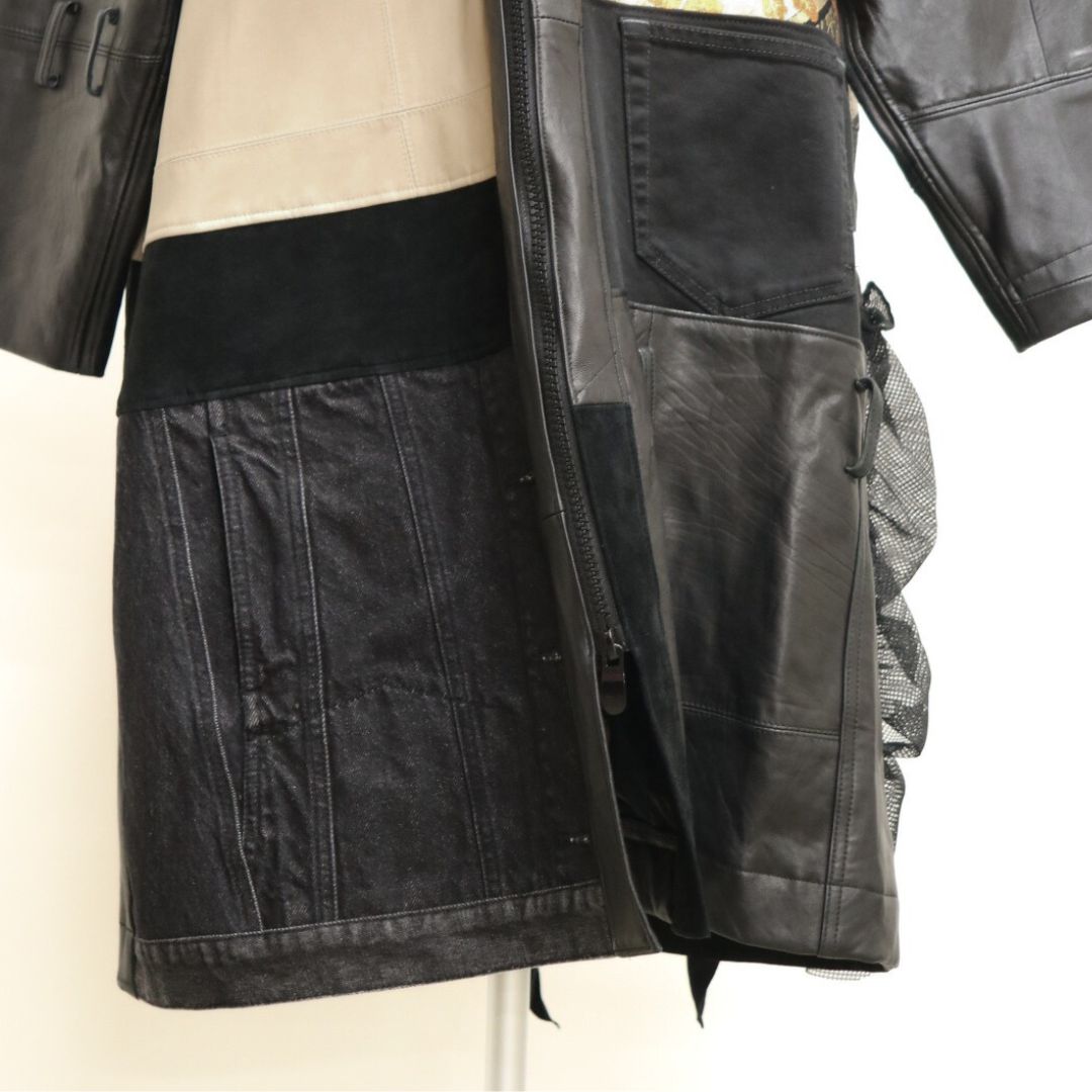 再構築obi Leather denim coat