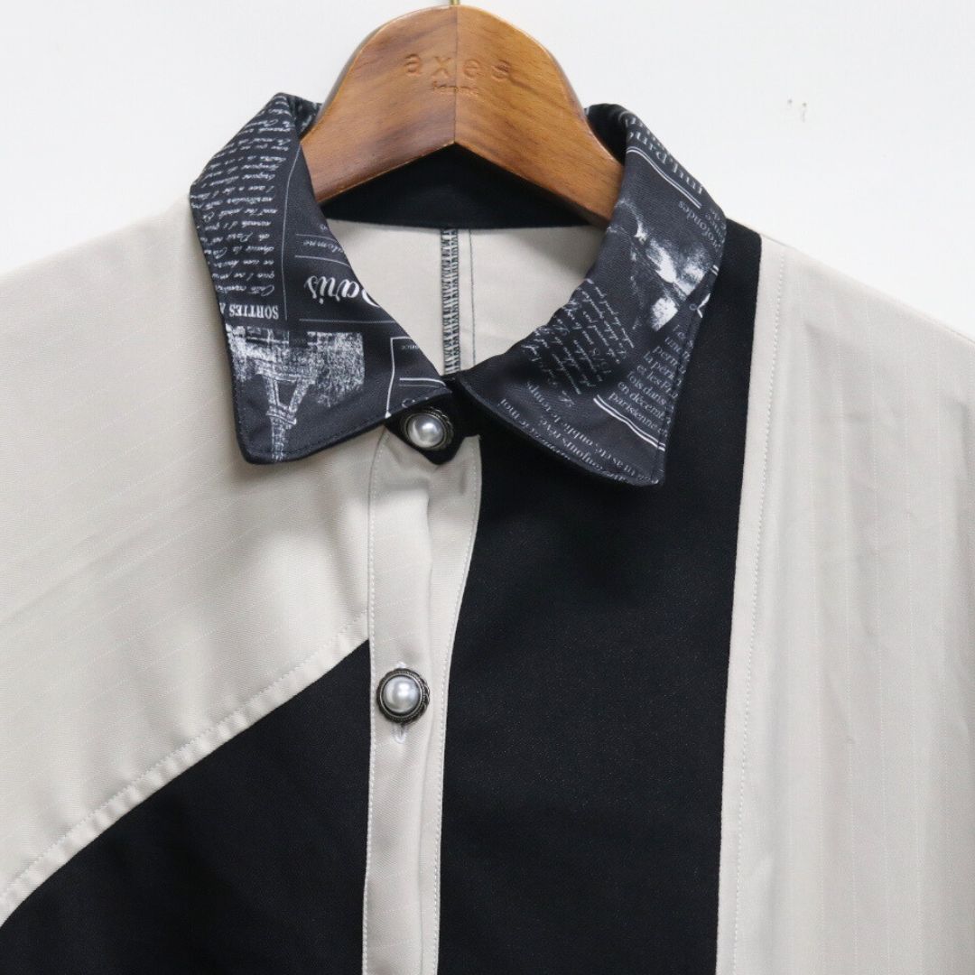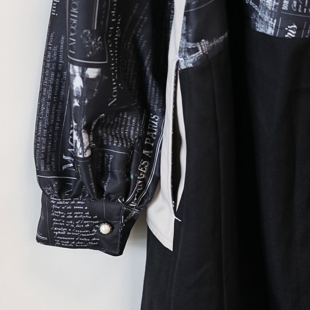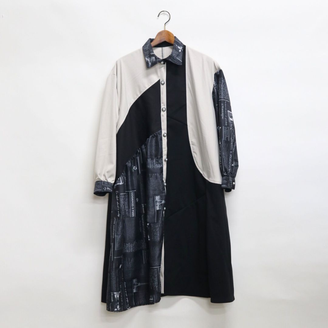 モノトーンでおしゃれなリメイクワンピースです。英字のプリントが上品さを引き立てます。