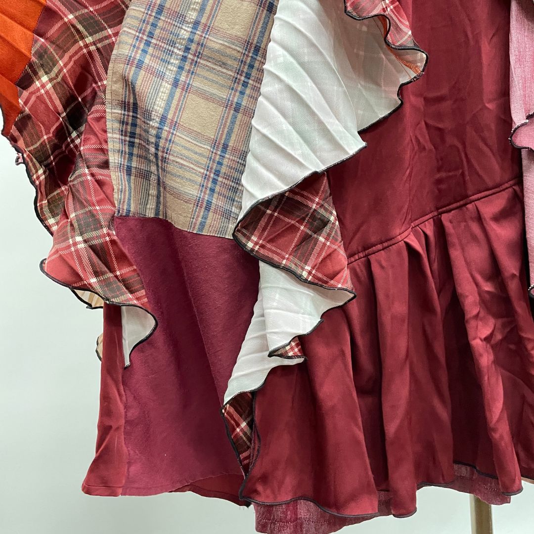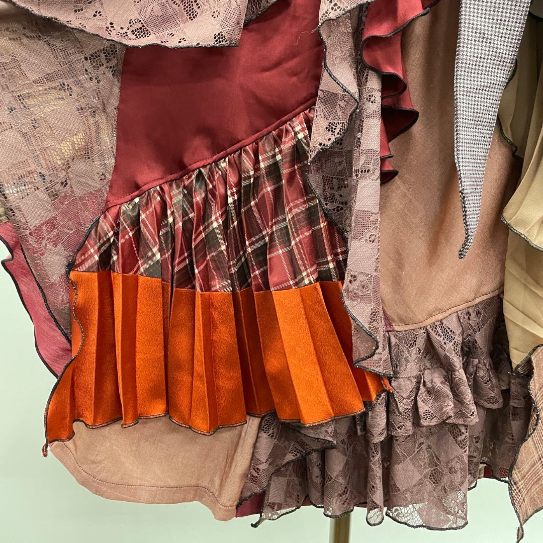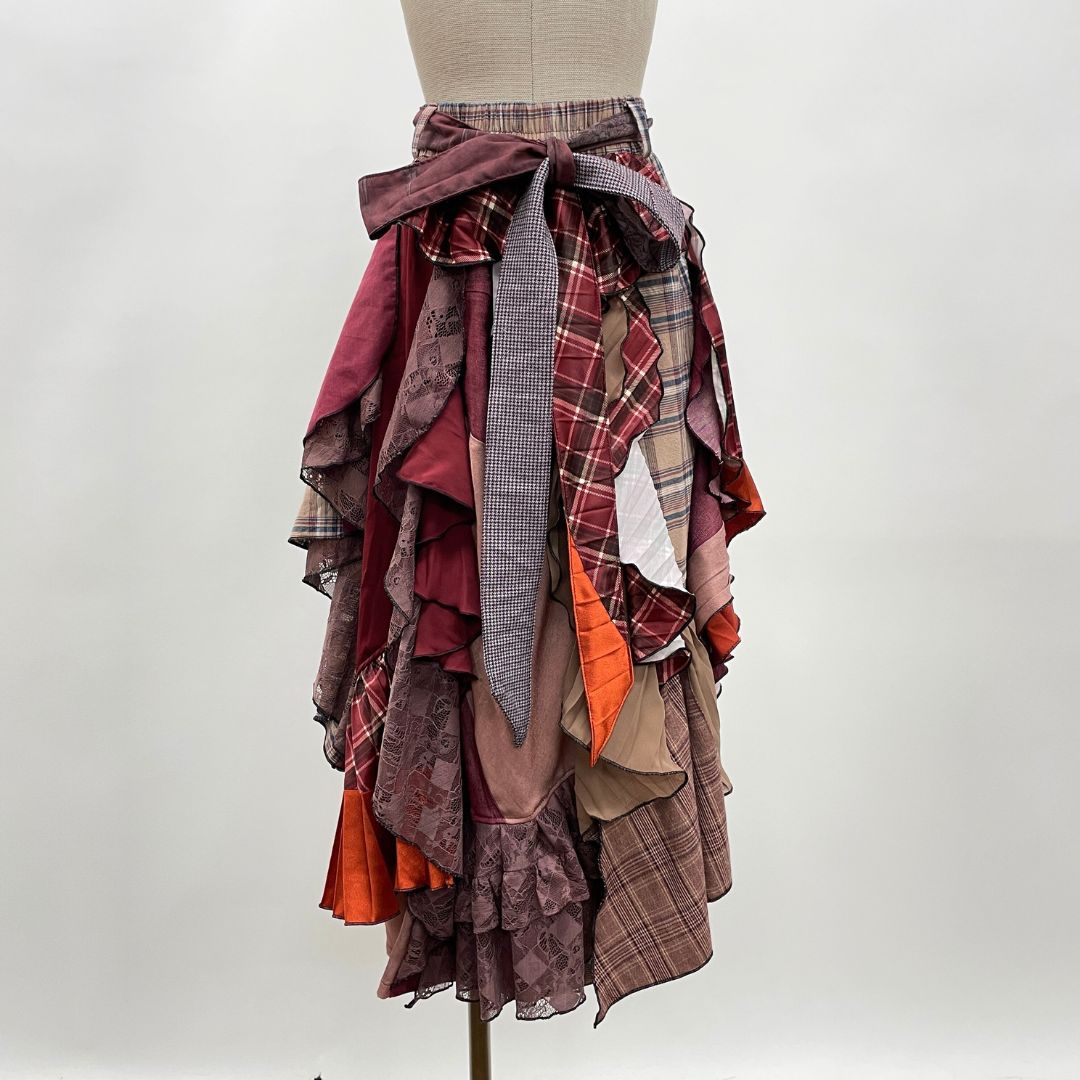 お客様から回収したaxes femmeの古着を何枚も使用し、全てクリエーターさんの手作業で裁断・縫製、全く新しい価値観のお洋服として再構築しています。