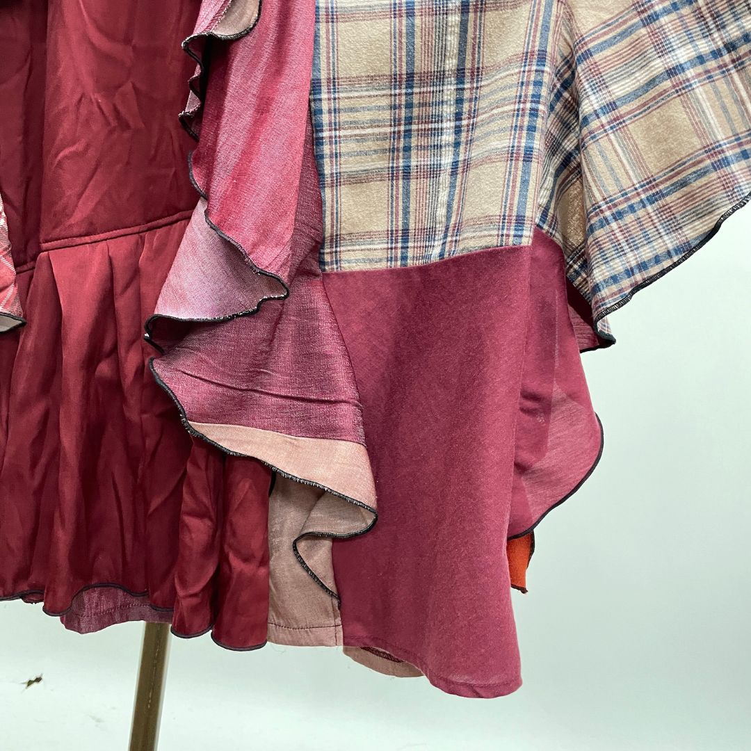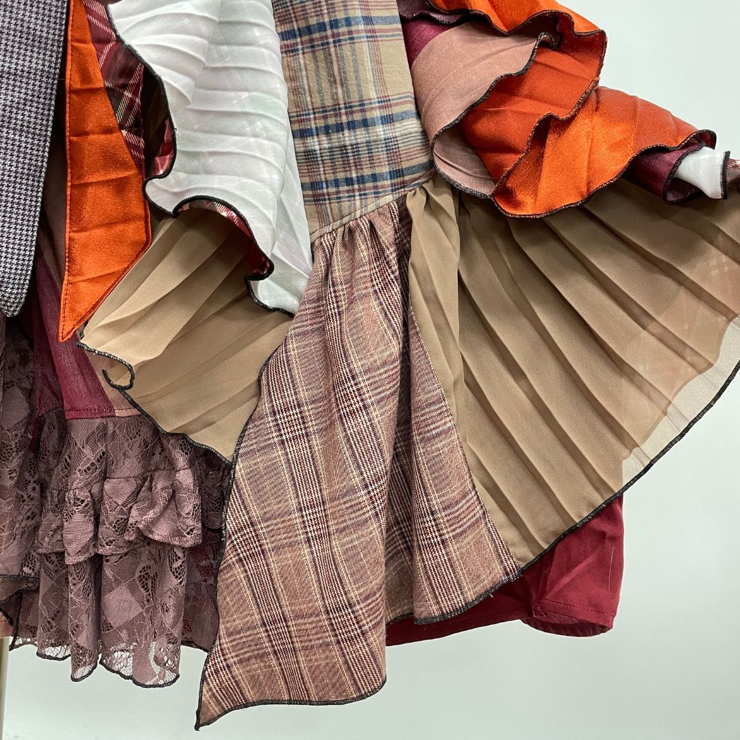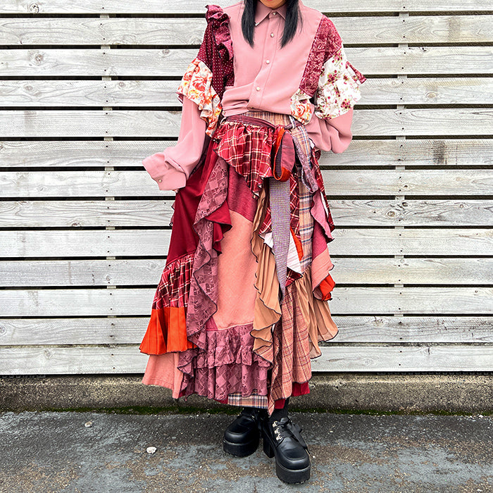 お客様から回収したaxes femmeの古着を何枚も使用し、全てクリエーターさんの手作業で裁断・縫製、全く新しい価値観のお洋服として再構築しています。