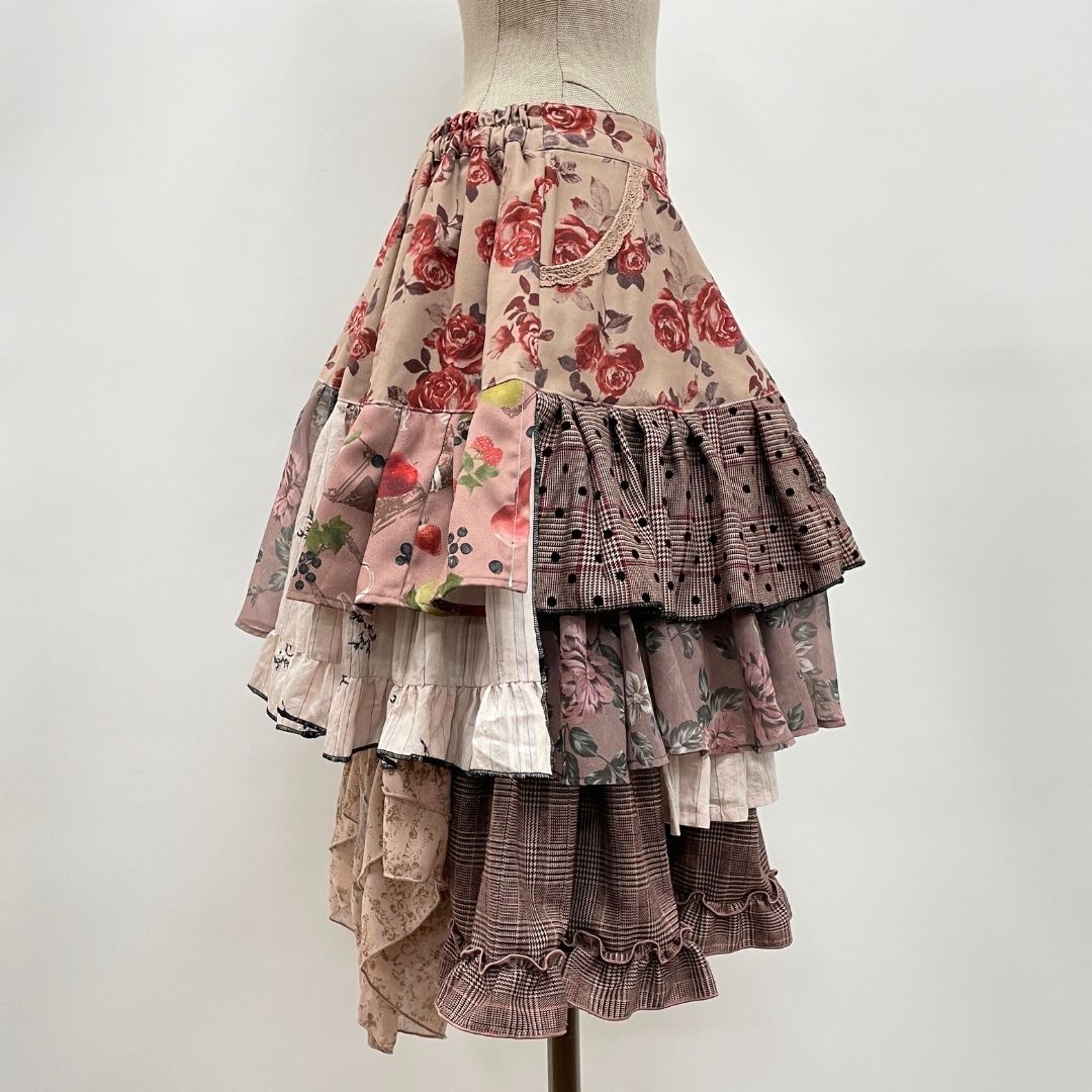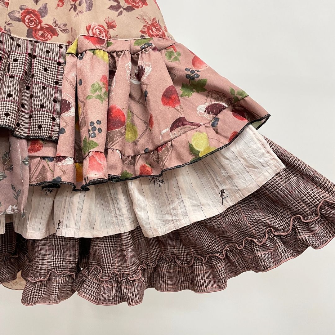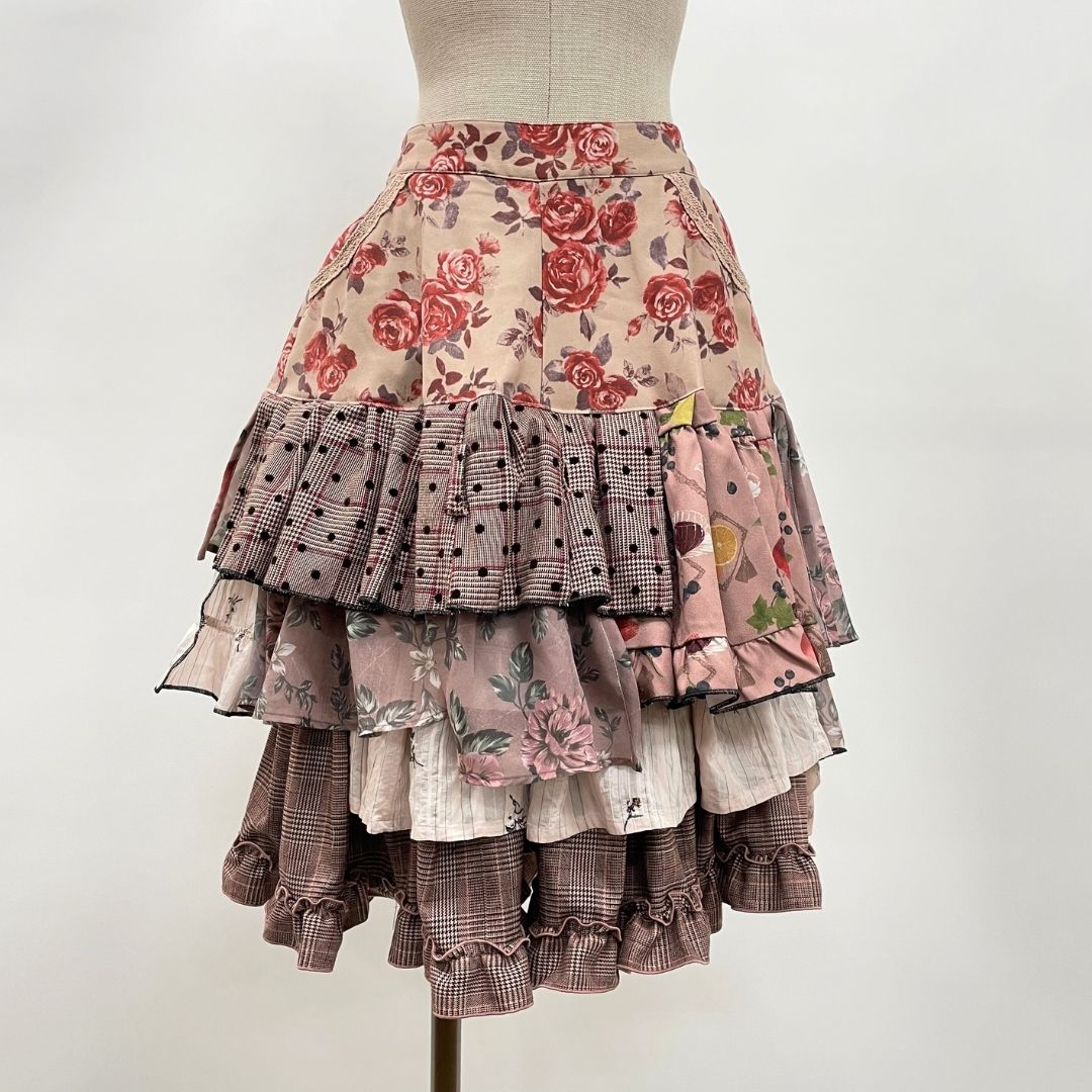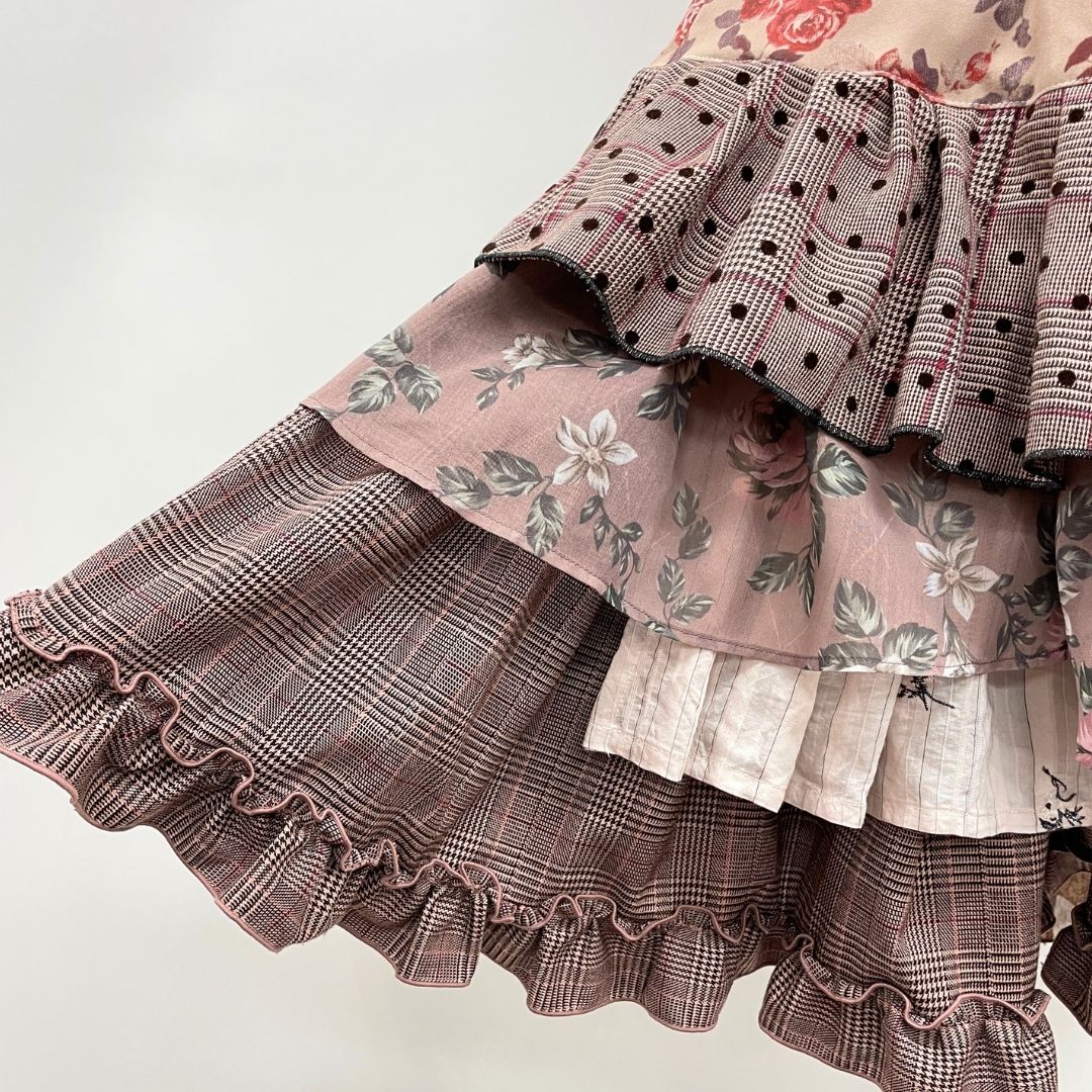 Re:make ティアードミドルスカート PINK×BORDEAUX