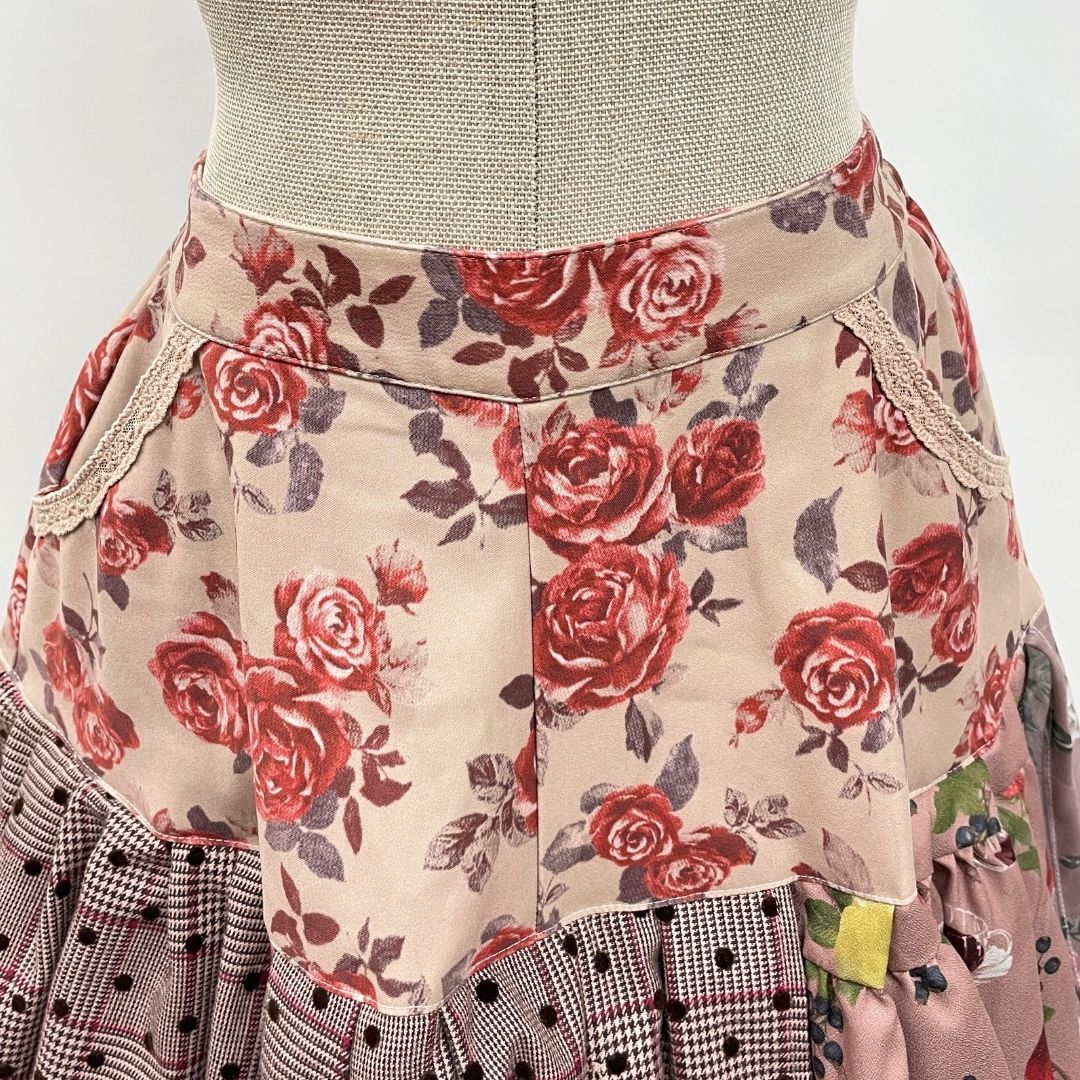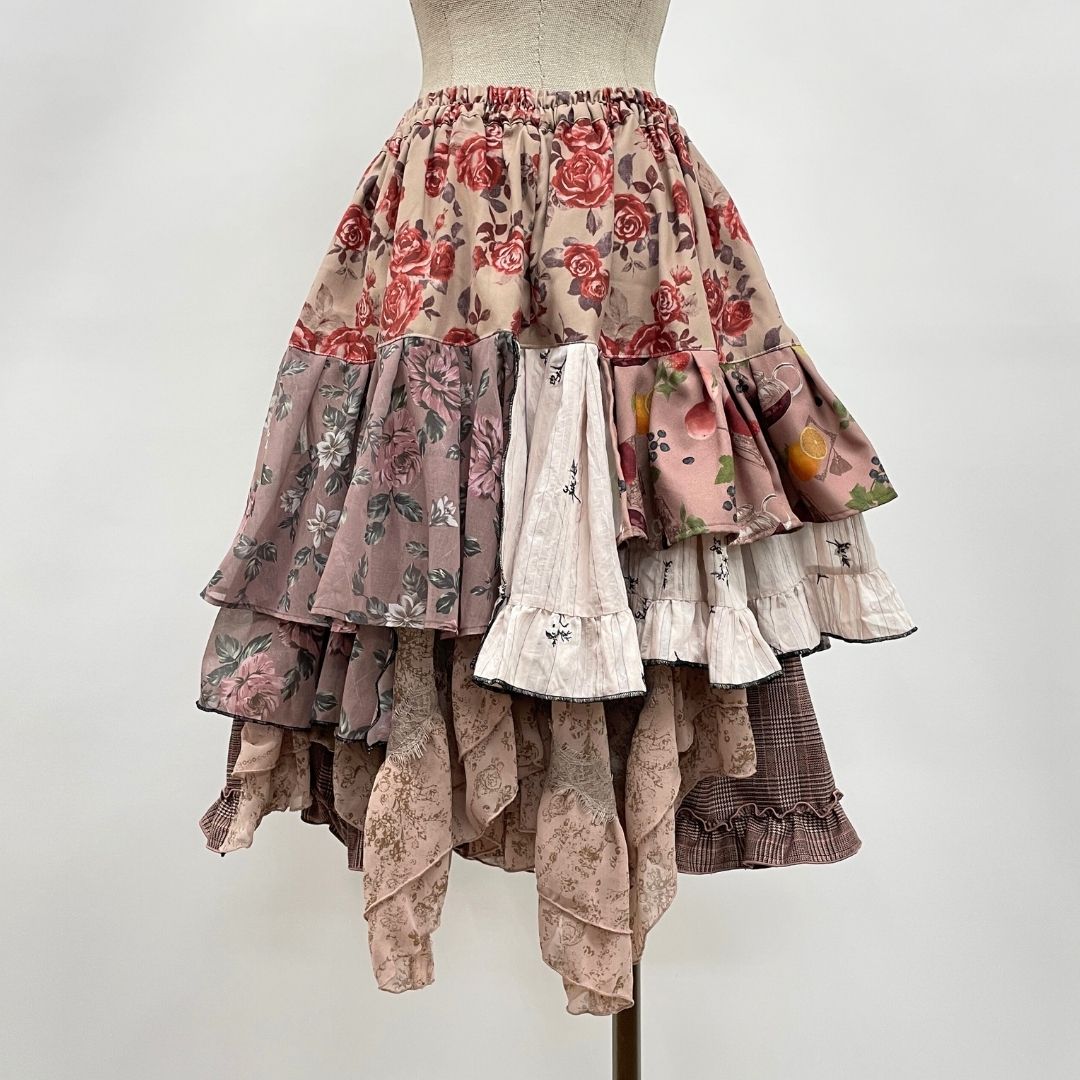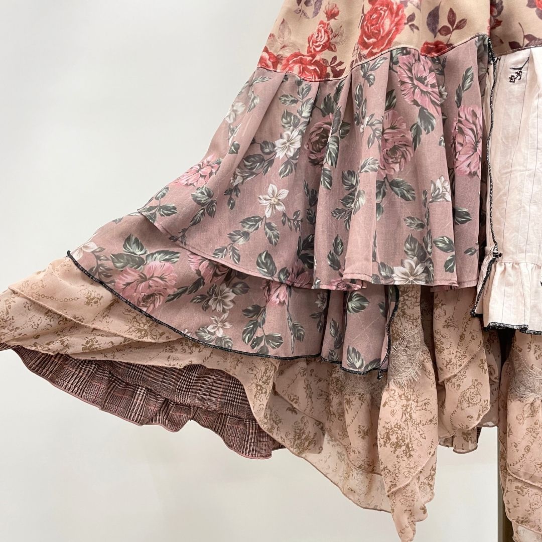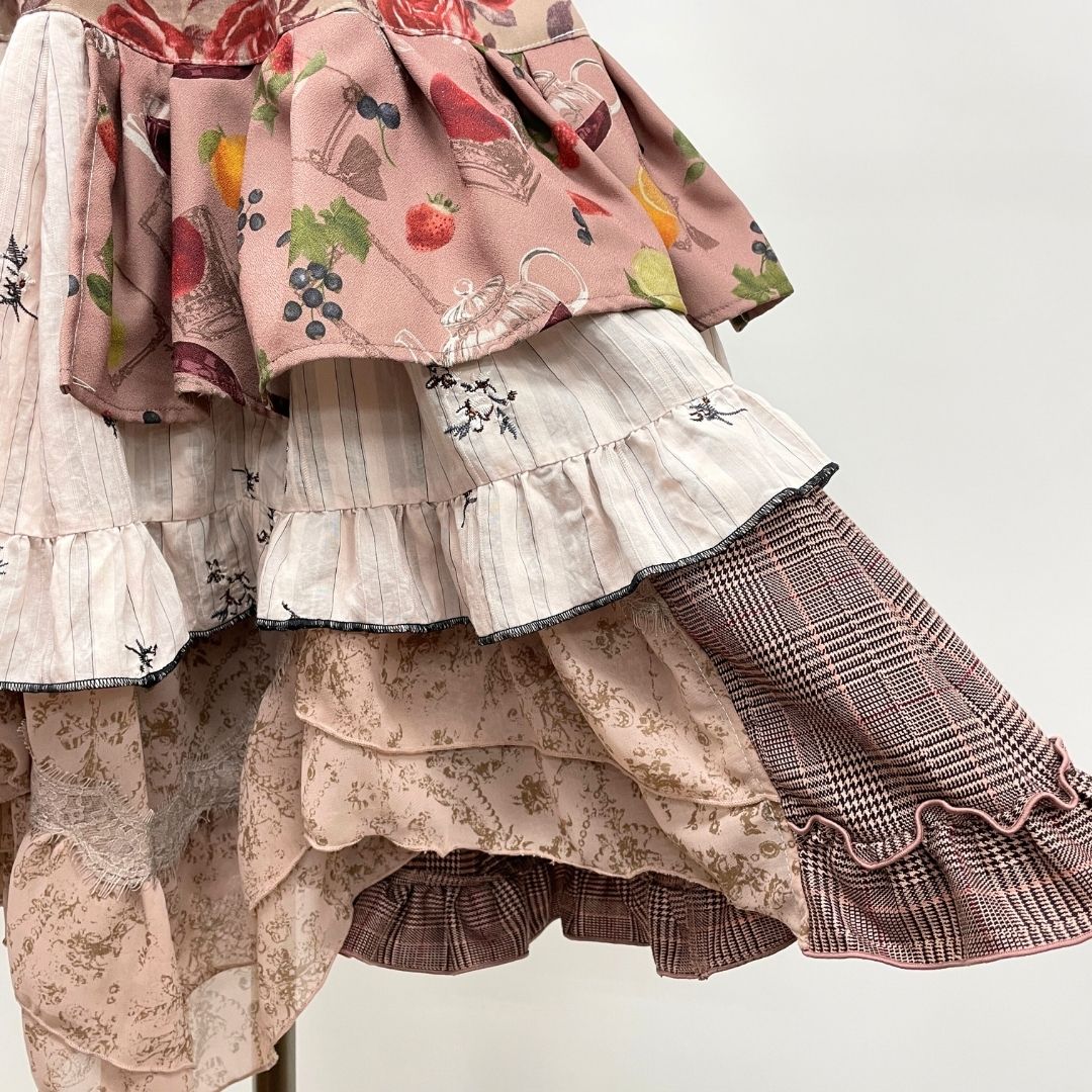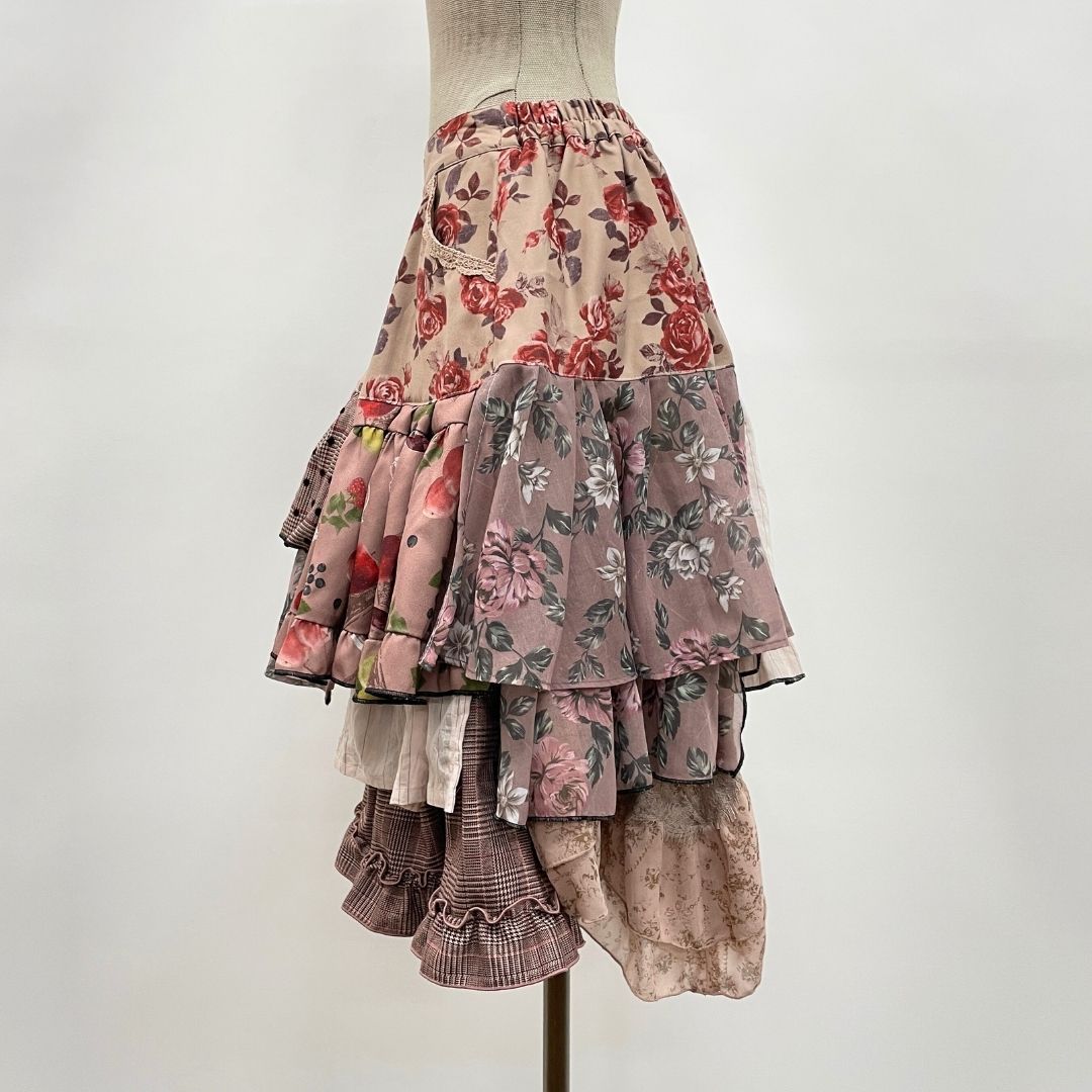Re:make ティアードミドルスカート PINK×BORDEAUX