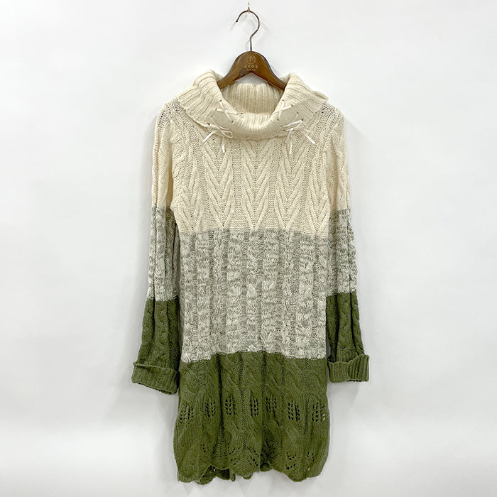 グラデーションのようにカラーが変化したようなデザインがインパクトのあるニットチュニックです。スリットが入っておりパンツやロングスカートを合わせても動きやすいデザイン♪。ペチスカートやペチワンピースをあわせてガーリーに着こなしても!気になる腰回りをカバーする丈感です、細ベルトを合わせてスタイルアップすると◎。オフタートル×シンプルなレースアップデザインがポイント。
