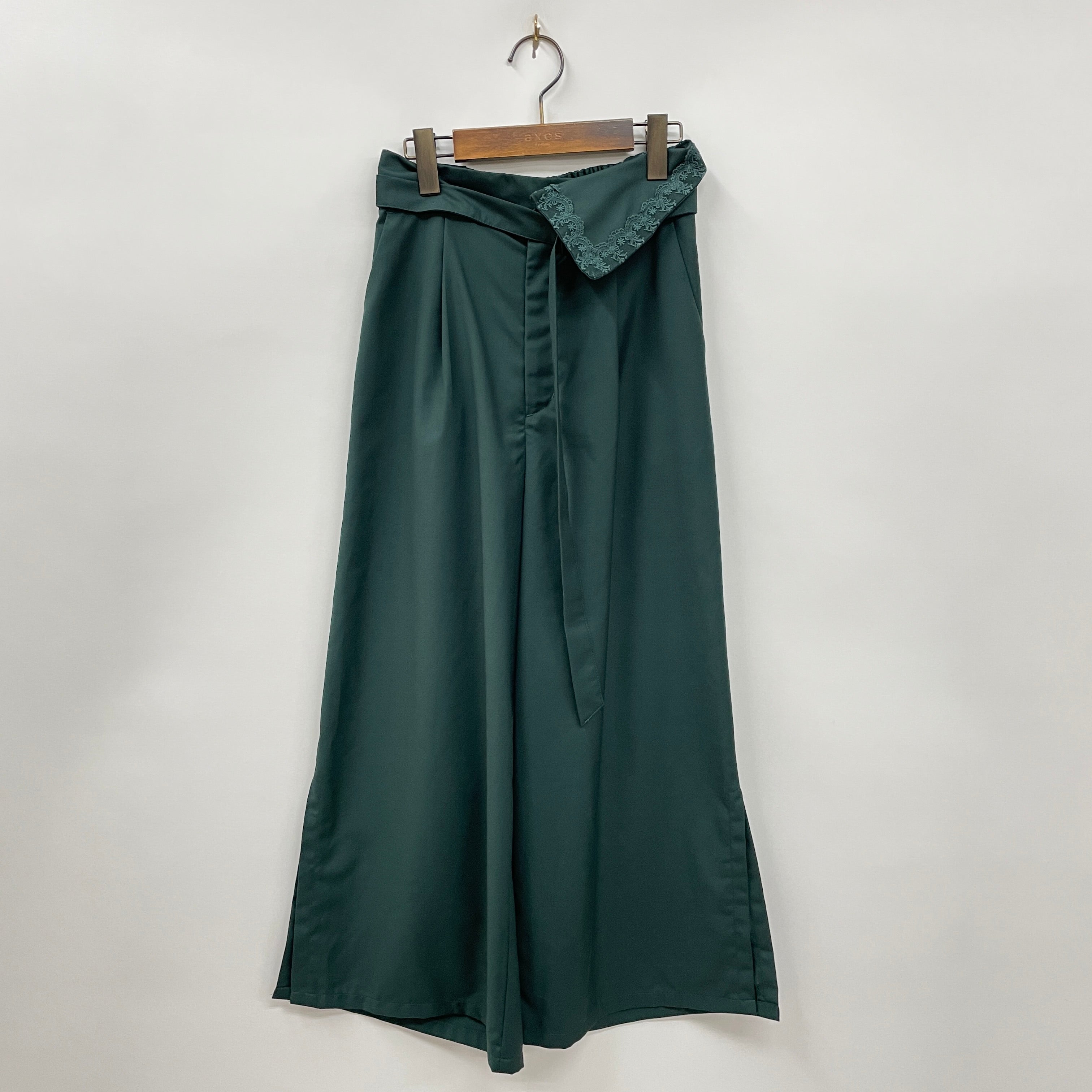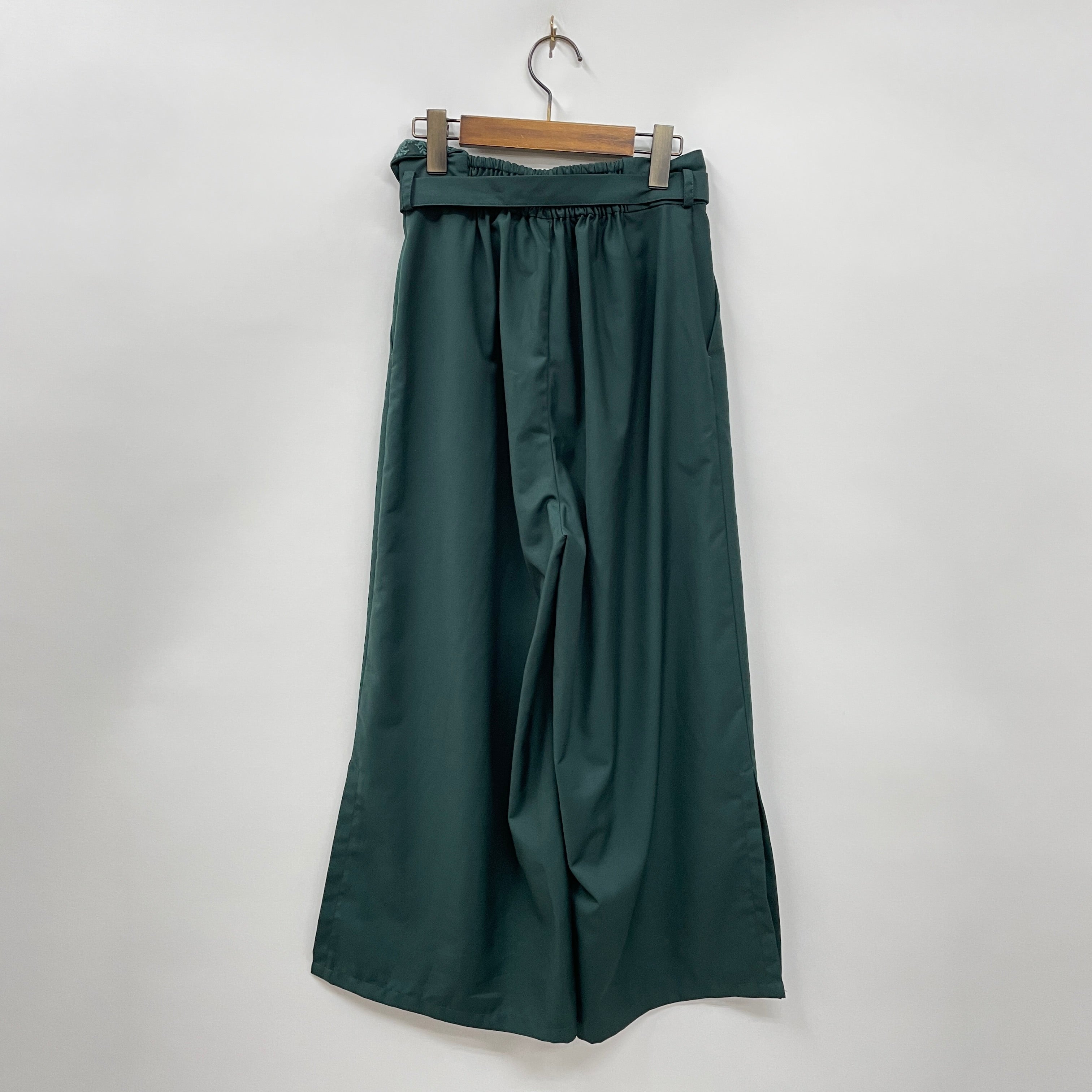 ウエストのベルト使いのデザインが印象的なワイドパンツは合わせるだけでトレンド感アップ!