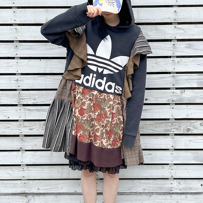 Re:make axesfemme×adidas PATCHWORK HOODIE BROWN