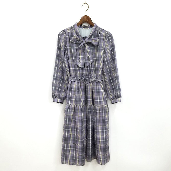 上品なボウタイデザインにチェック柄が秋らしい、フェミニンカジュアルなワンピースです。