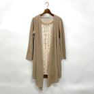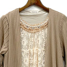 レースチュニックにカーディガンを羽織ったような、フェミニンなレイヤード風デザインのチュニックです。