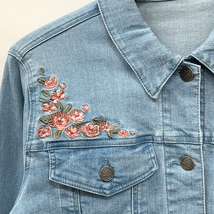 花刺繍ストレッチデニムJKT