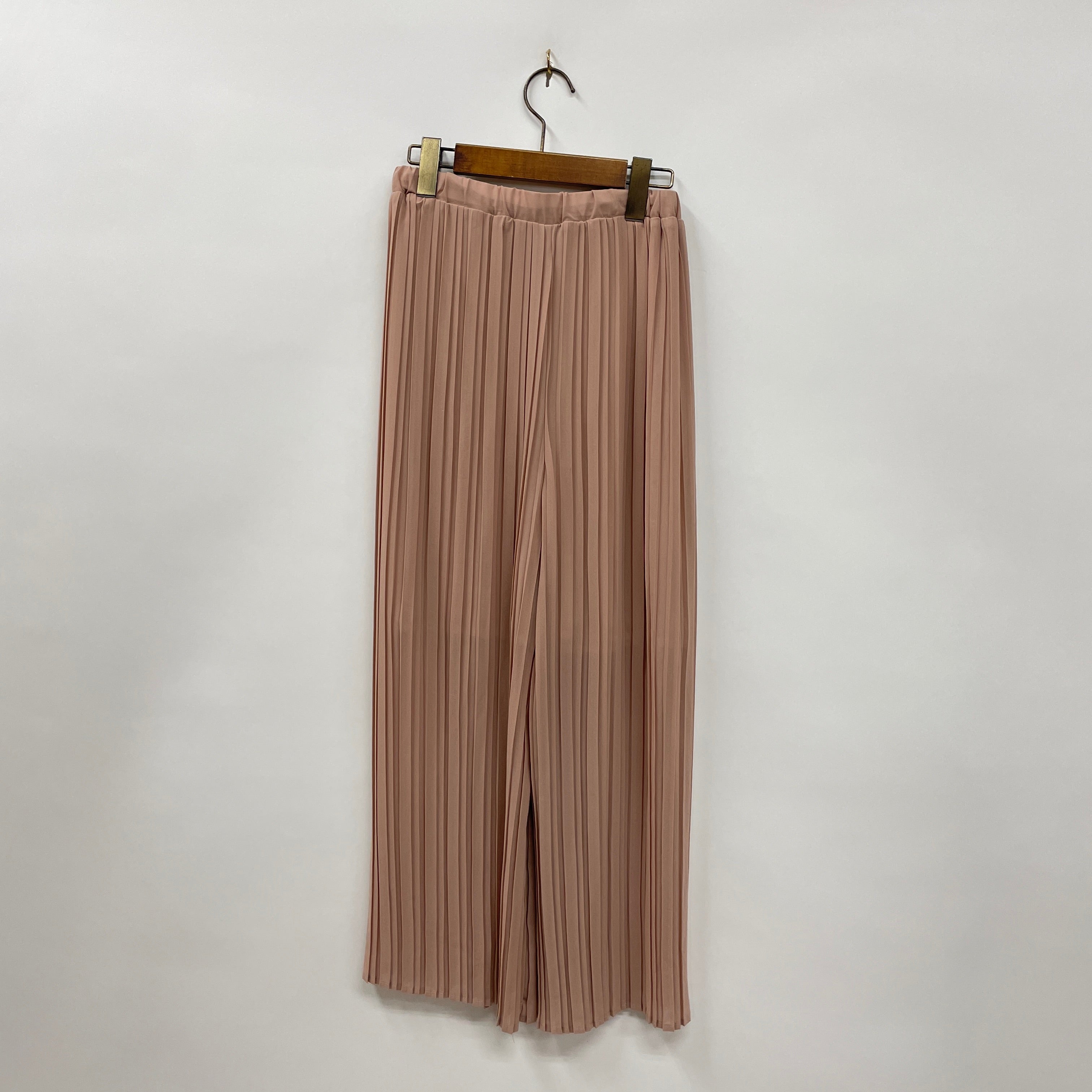 プリーツ素材のワイドパンツです。さらっとした素材で、暑い季節も着やすい素材感。すとんとしたシルエットになるプリーツ加工をしているのでスタイルアップ効果も◎。インスタイル、アウトスタイルどちらにも合わせられるアイテムです。