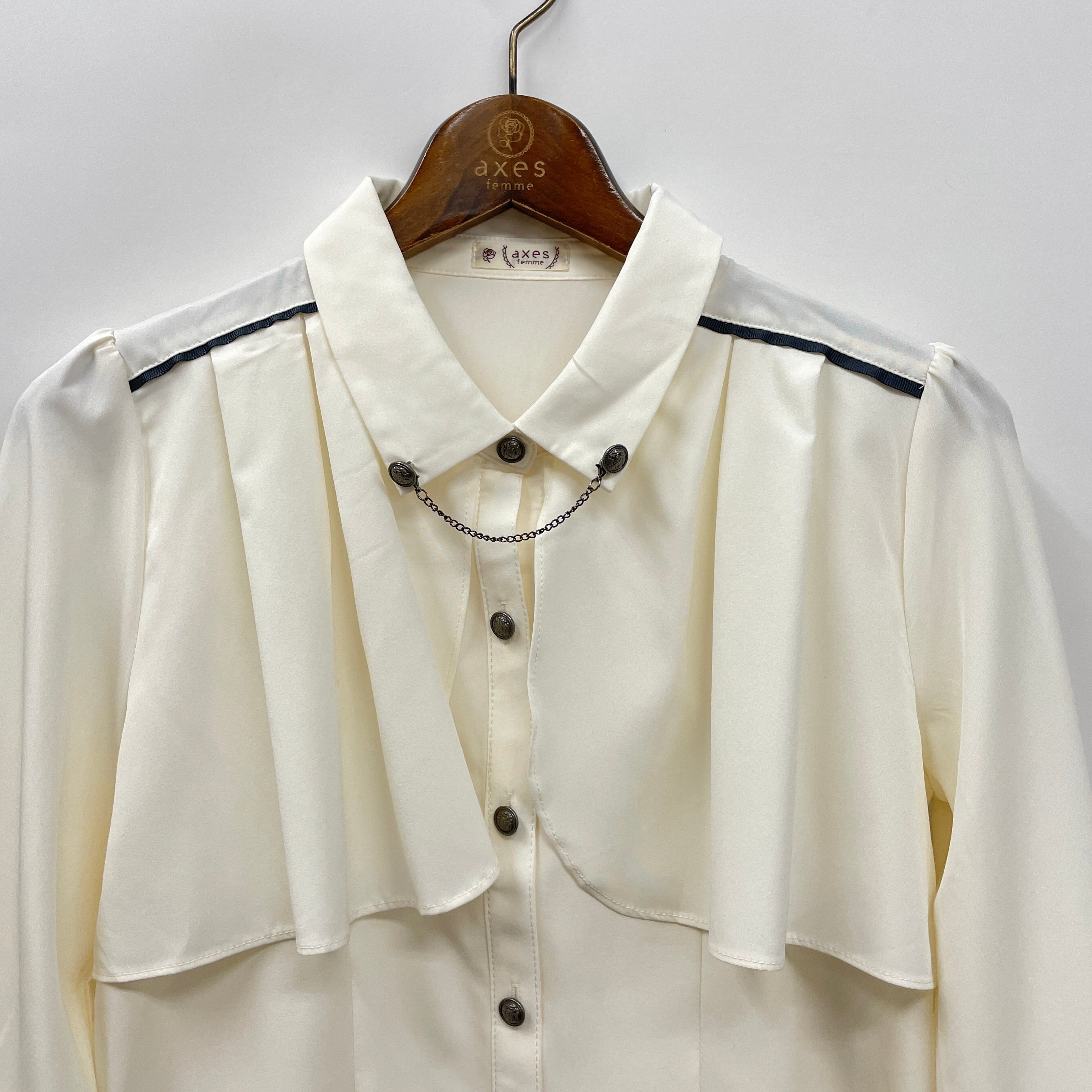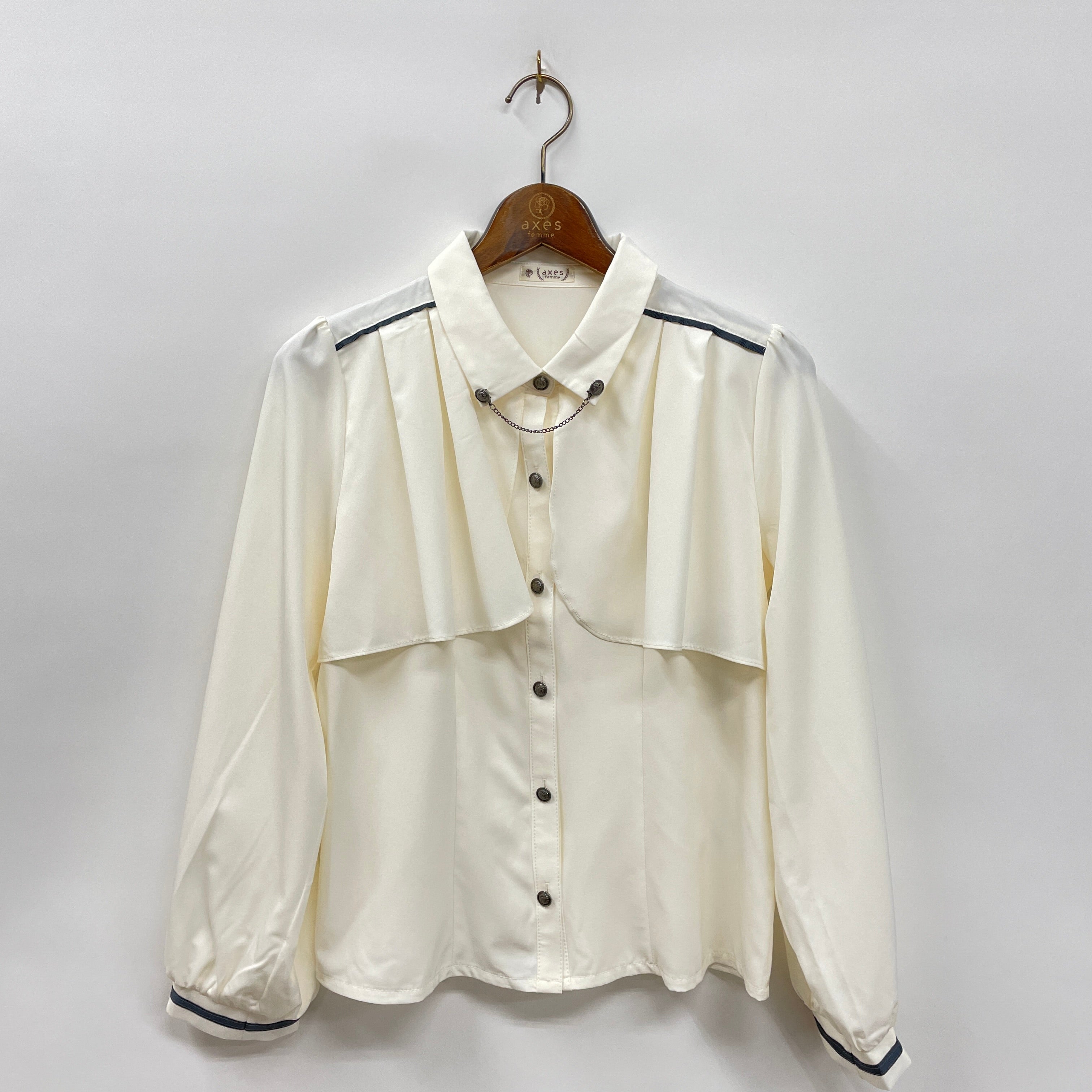 フラシデザインがミリタリーチックに決まるブラウスです。