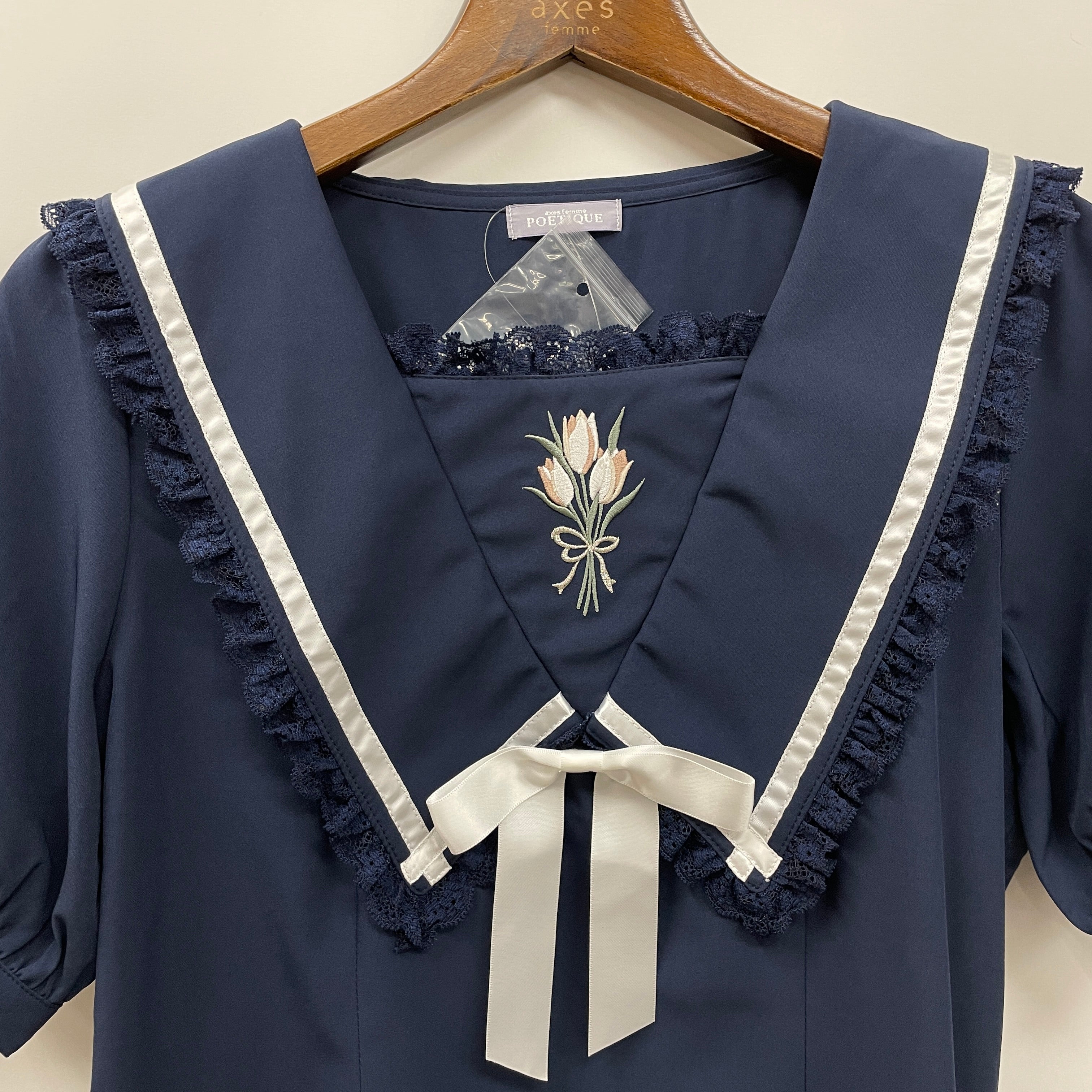 チューリップブーケを刺繍であしらったブラウスです。