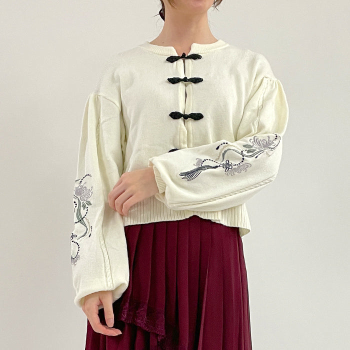 人とかぶらない、オリエンタルなデザインのニットカーディガン