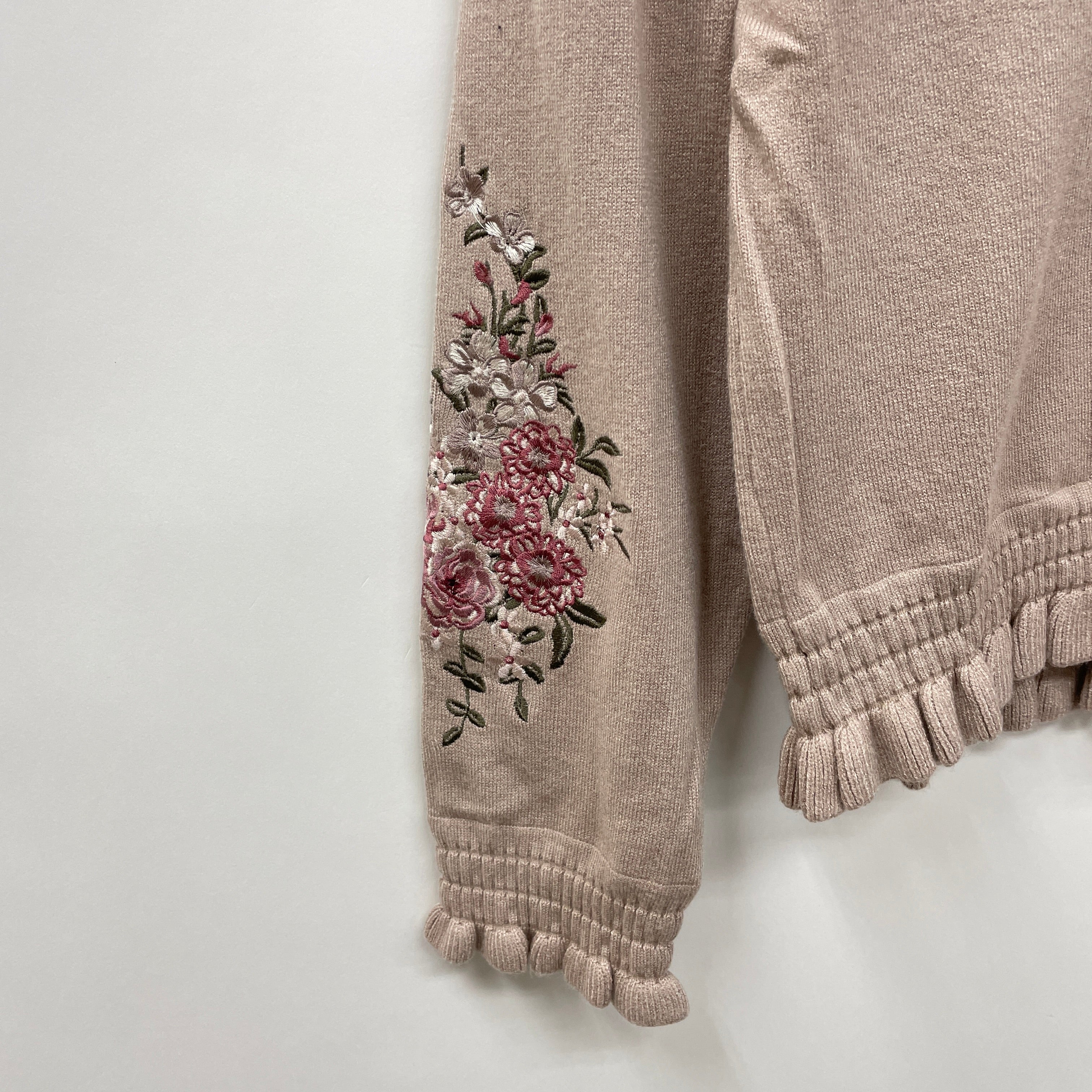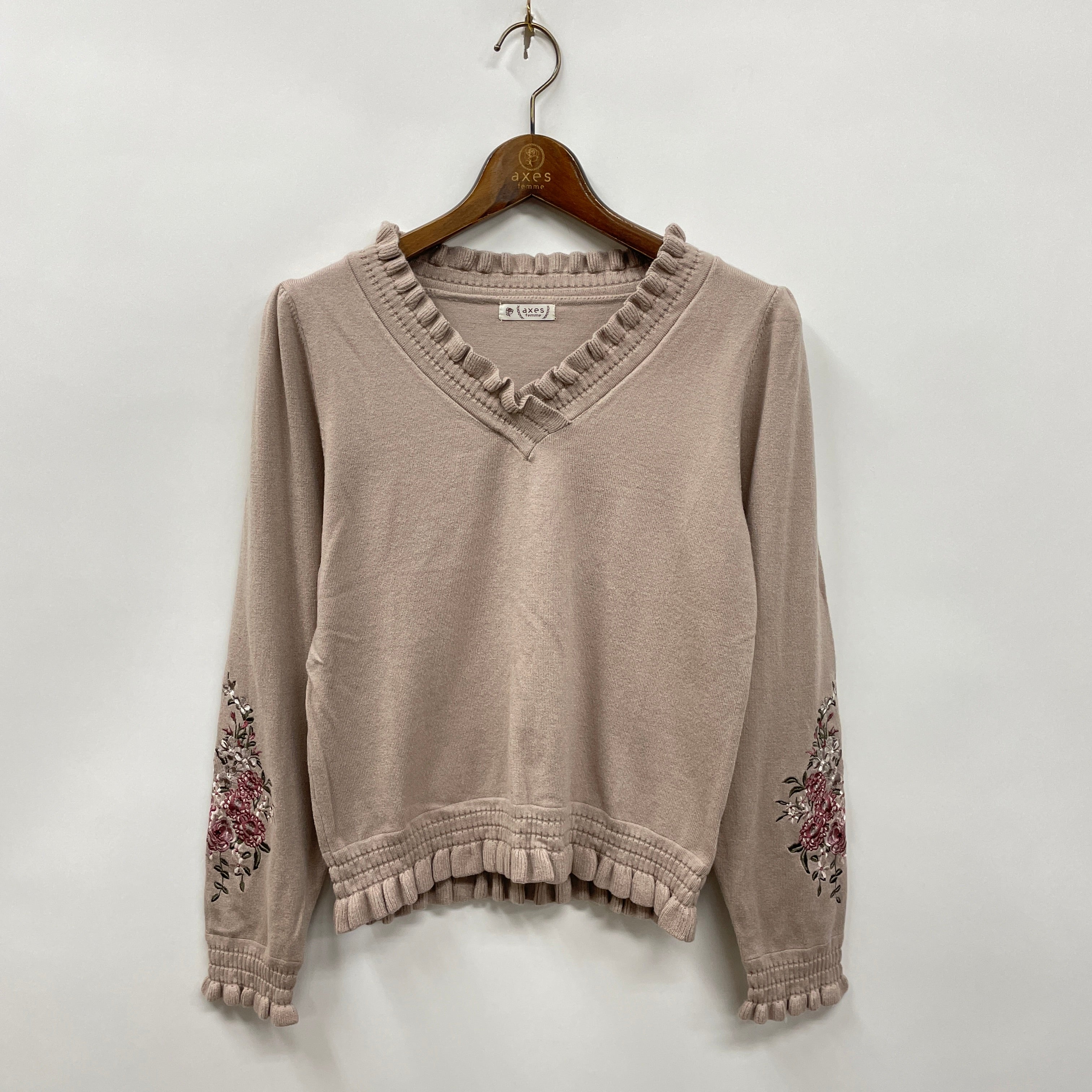 袖にバラを中心としたブーケの刺繍を施したニットプルオーバーです。